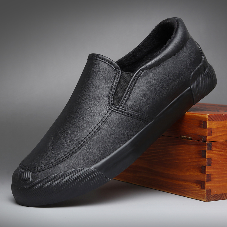 冬季男鞋保暖加绒低帮棉鞋新款一脚蹬防水男士休闲皮鞋二棉懒人鞋