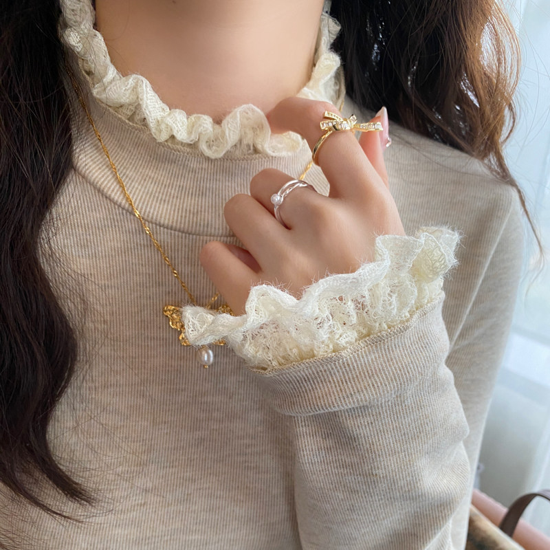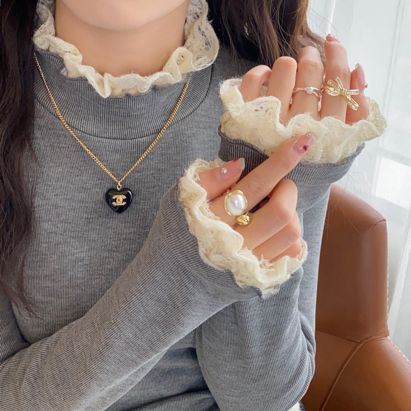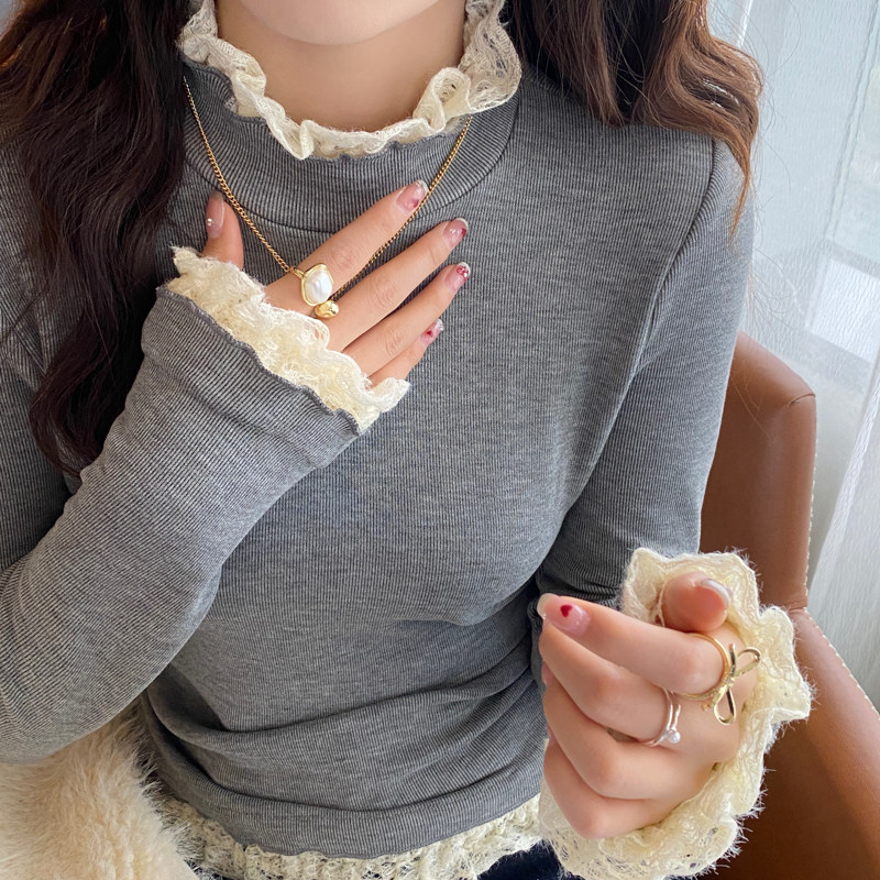 加绒蕾丝花边半高领打底衫女内搭2025秋冬新款高级感磨毛加厚上衣