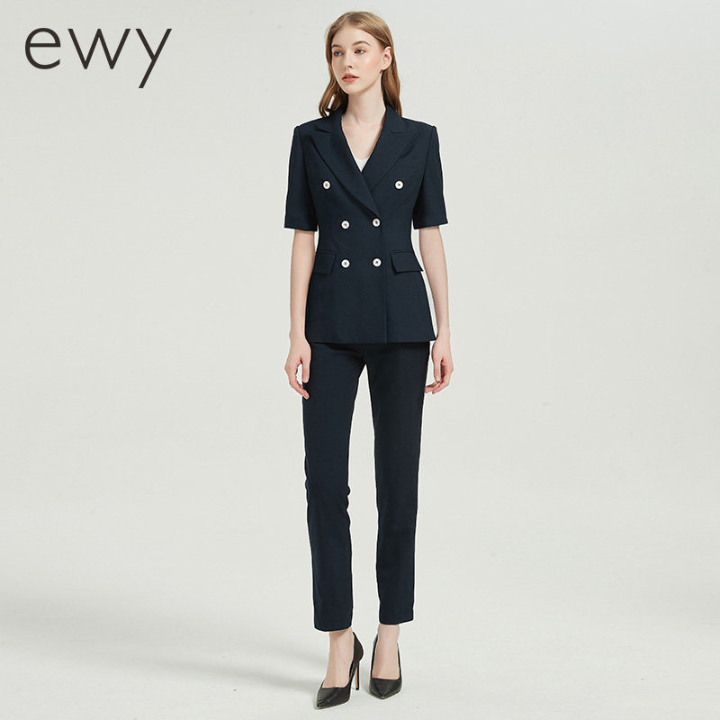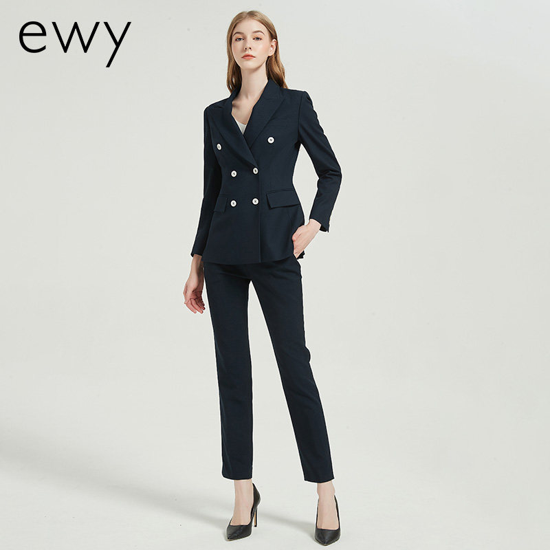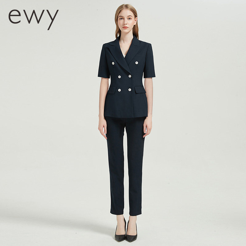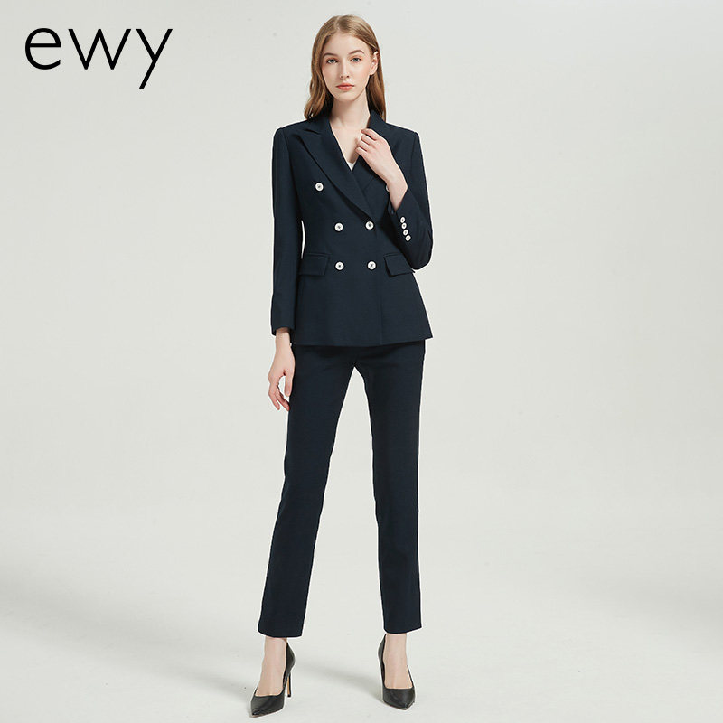 时尚藏青色西装外套女商务白领通勤西服套装职业装正装面试工作服
