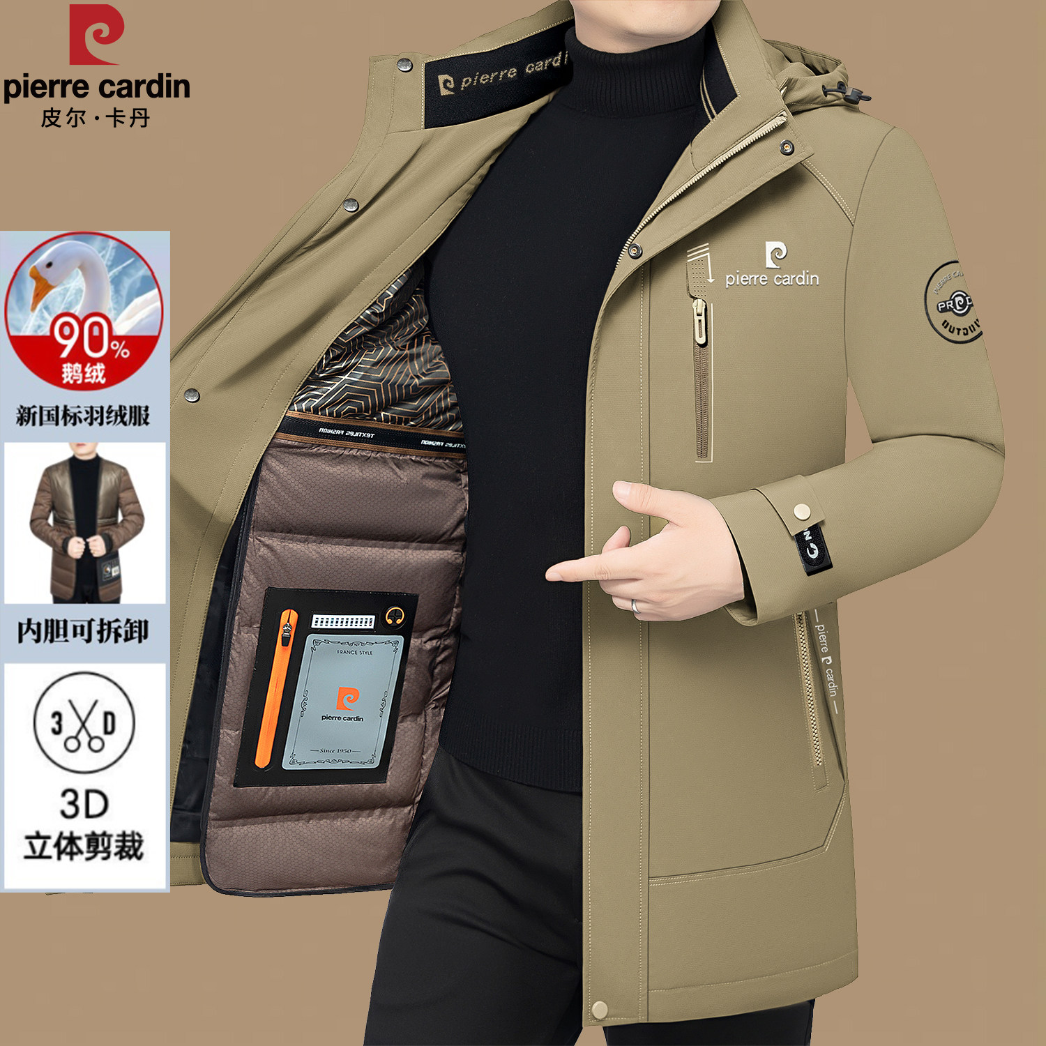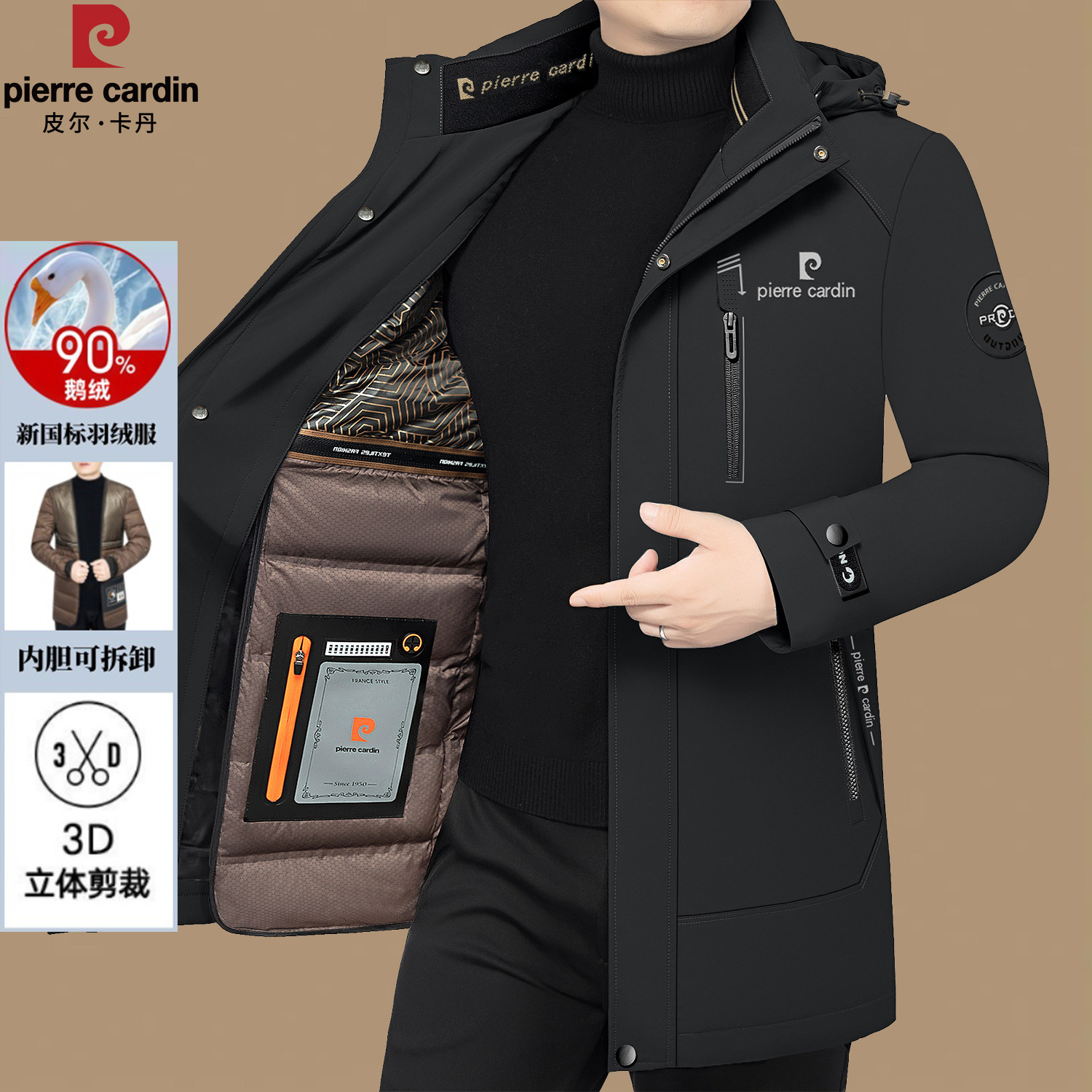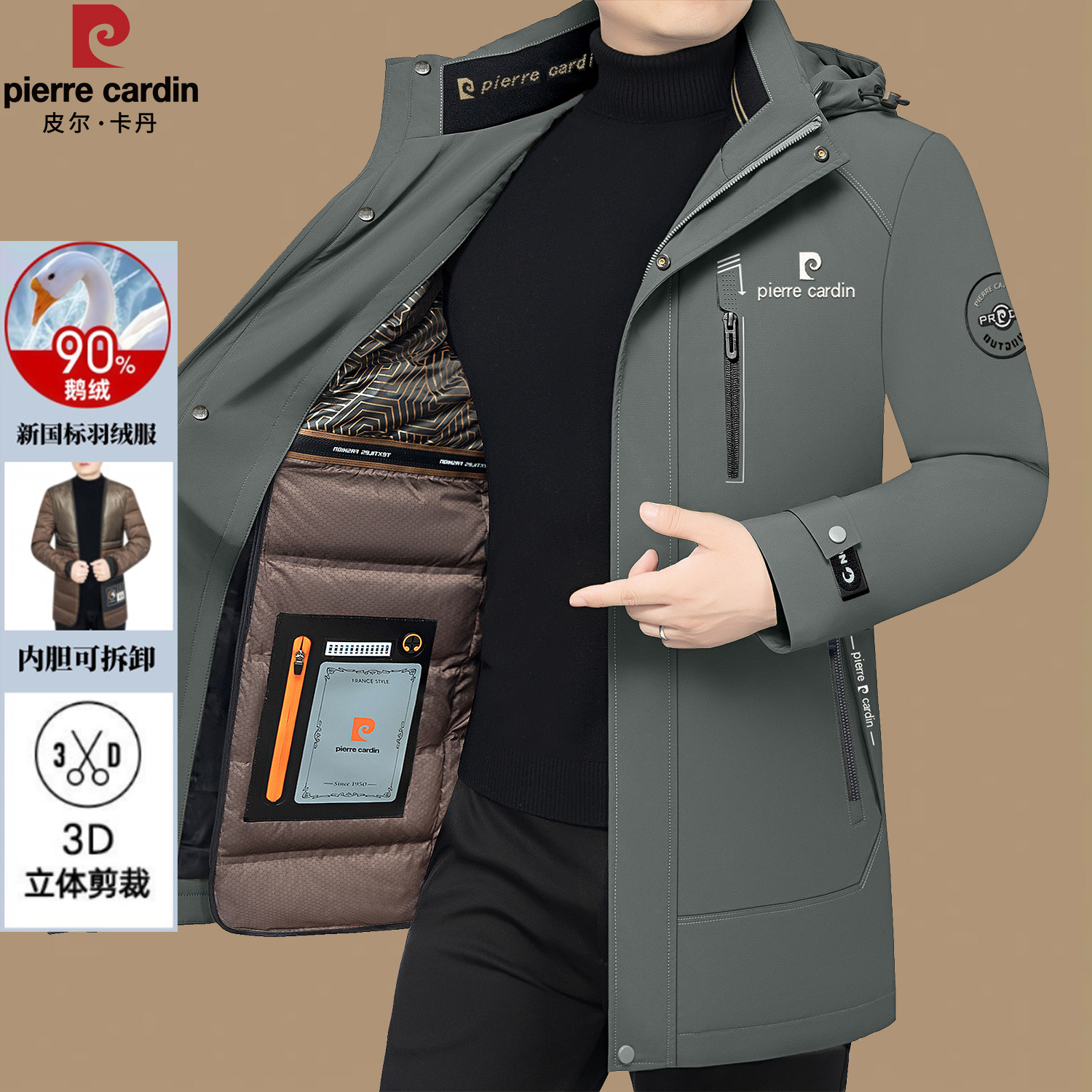皮尔卡丹羽绒服男中年冬季中长款可拆卸内胆鹅绒休闲极寒加厚外套