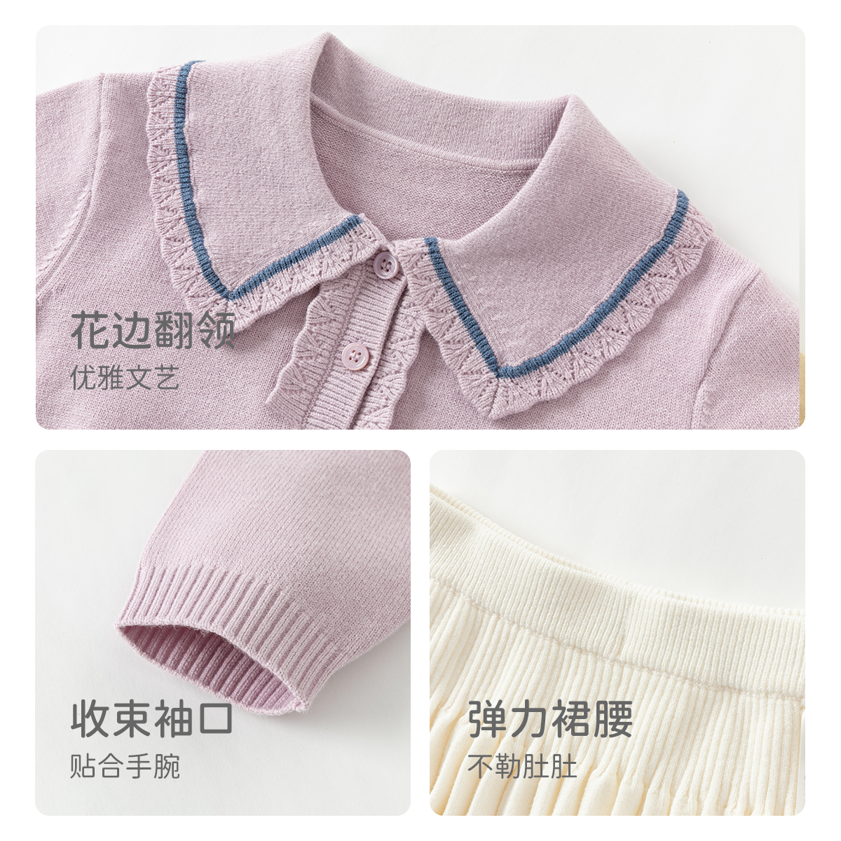 戴维贝拉女童半裙套装2025秋装新款女宝学院风百褶裙短裙两件套