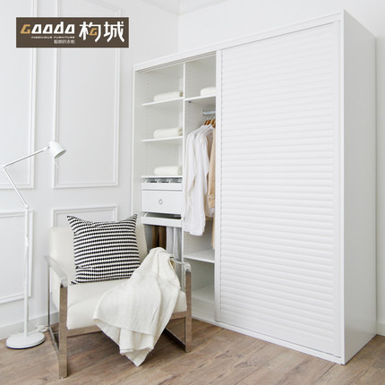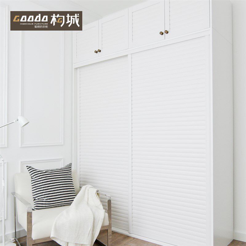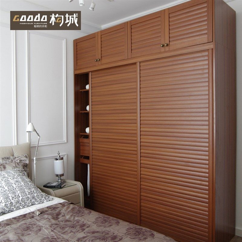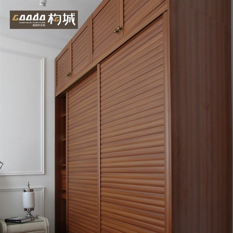 百叶 定制衣柜整体实木家具欧式百K叶推拉门趟门衣柜定做