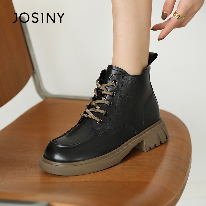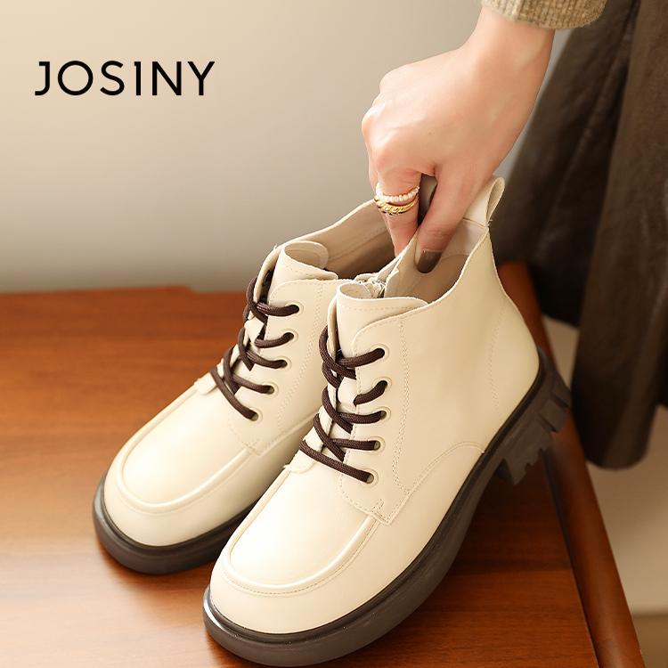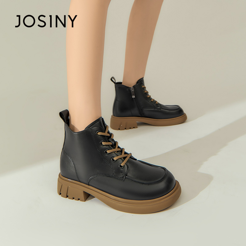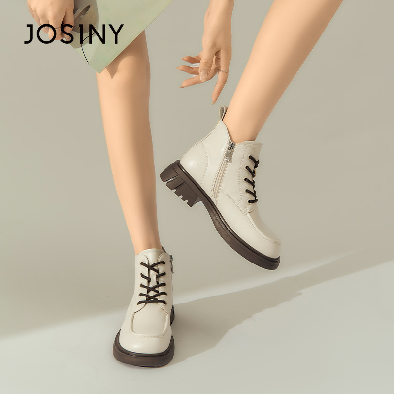 卓诗尼女鞋冬季新款女短筒靴包边圆头厚底系带侧拉链马丁靴百搭潮