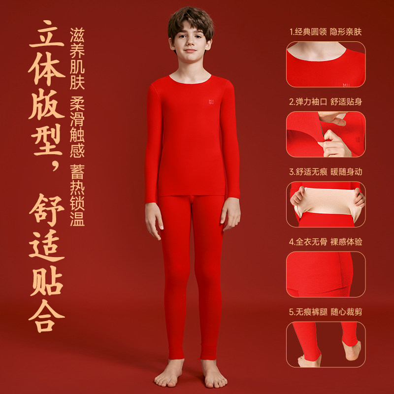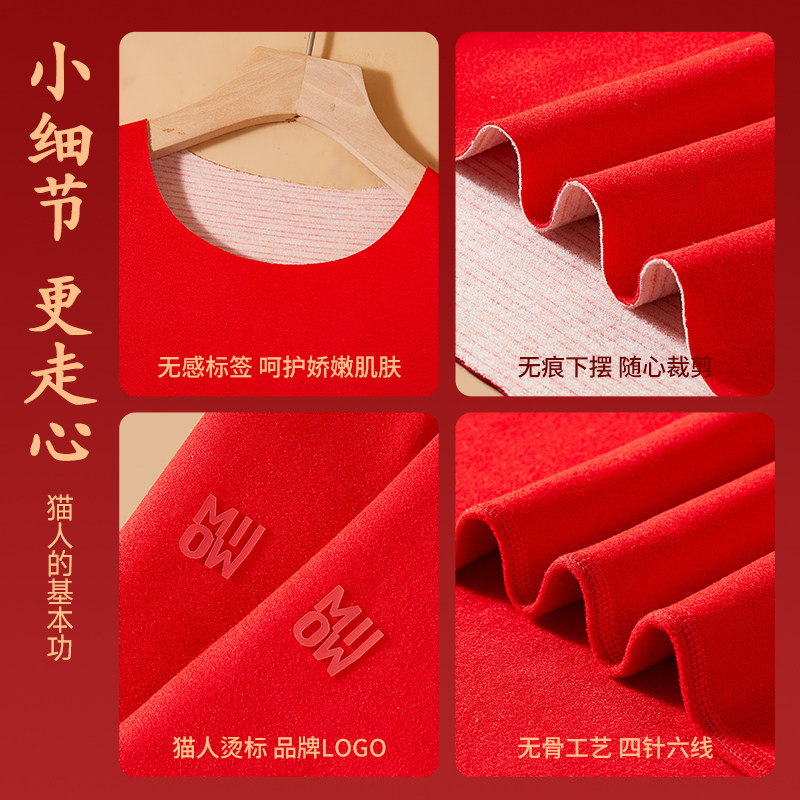 猫人儿童本命年保暖内衣套装红色绒德男女童12岁衣服礼物秋衣秋裤