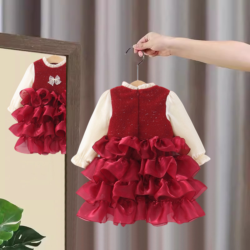 女童连衣裙秋冬装新款洋气儿童公主裙女宝宝周岁礼服加绒裙子冬季