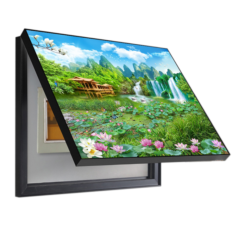 大气山水瀑布旭日东升迎客松免打孔遮挡电表箱配电箱电闸空开挂画