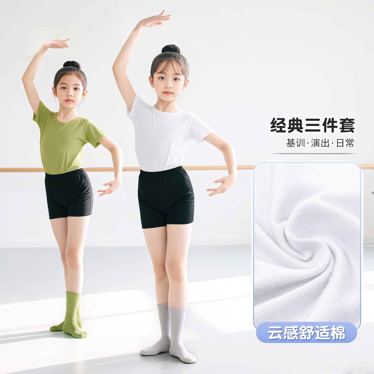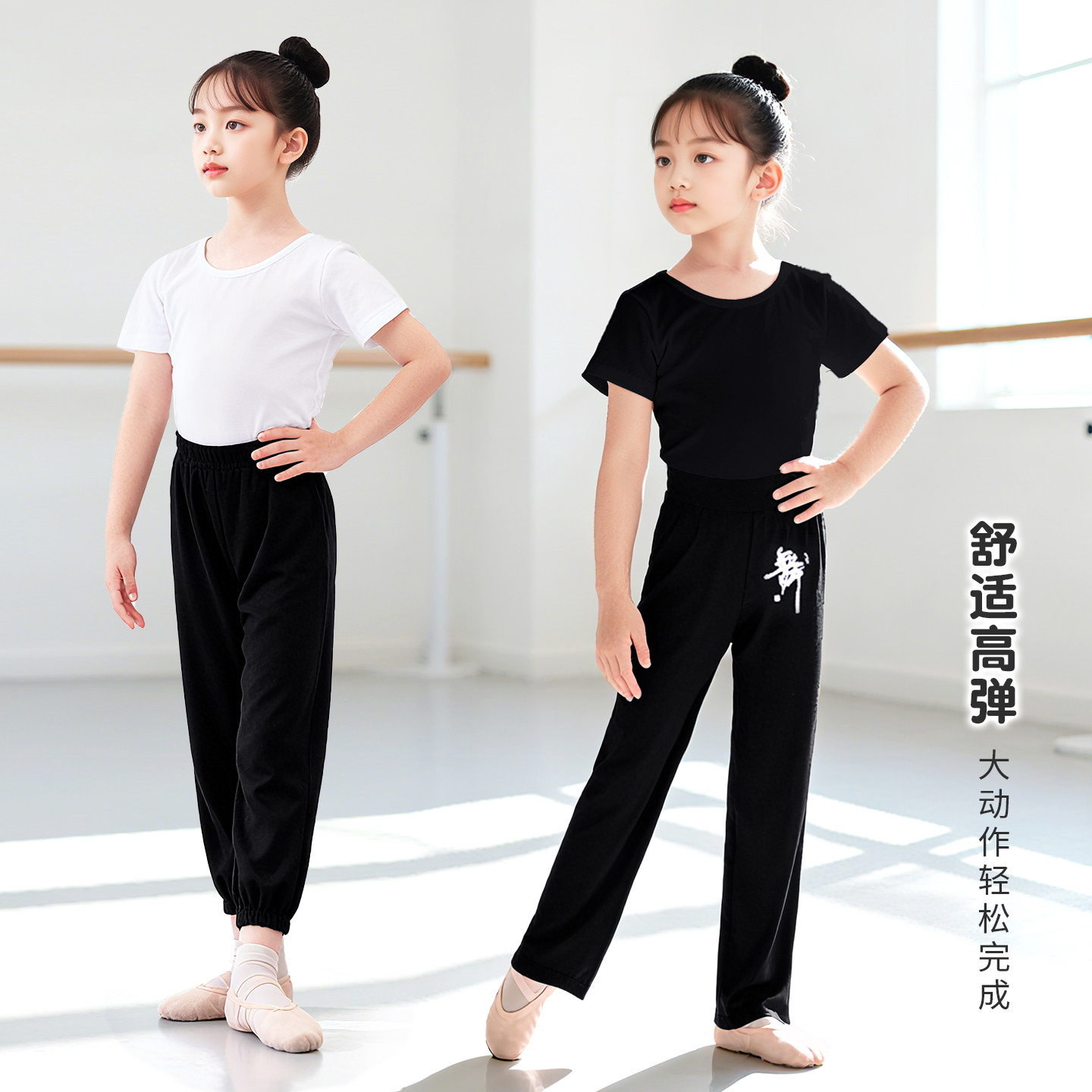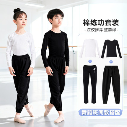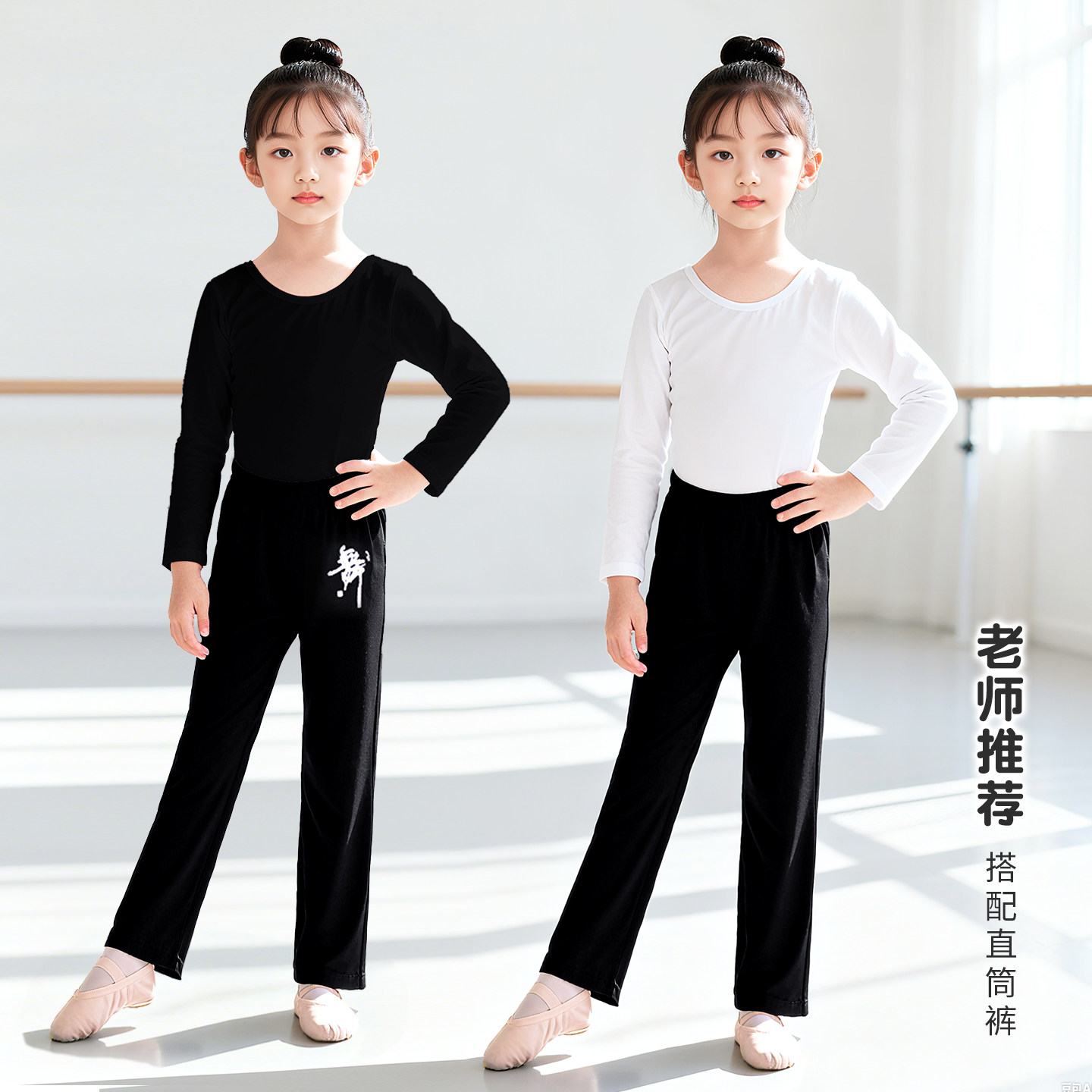 儿童舞蹈服T恤套装女童白色中国舞练功服男童黑色长袖拉丁舞上衣