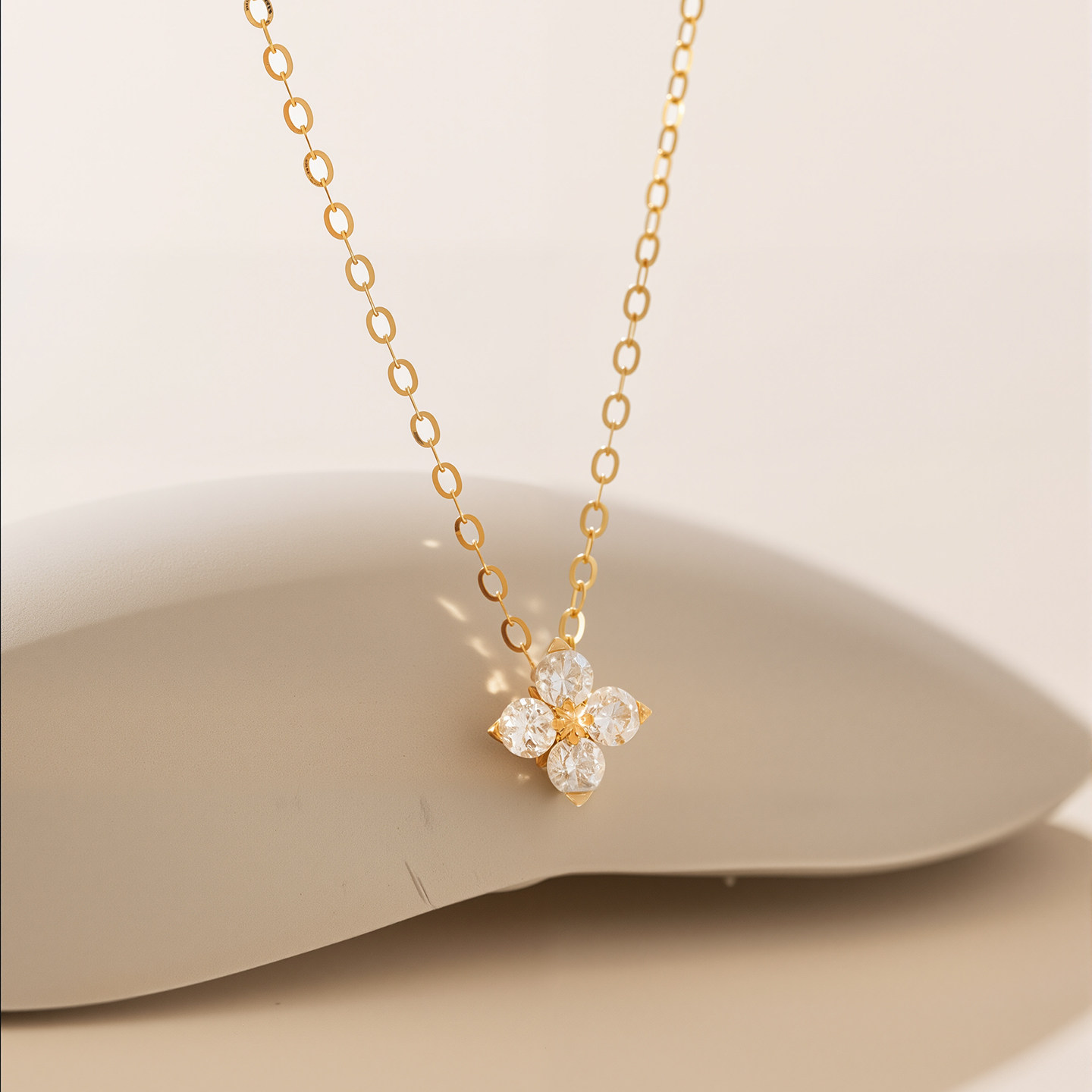 钻名流 闪耀之星18k幸运四叶草钻石项链河南培育钻石吊坠锁骨链
