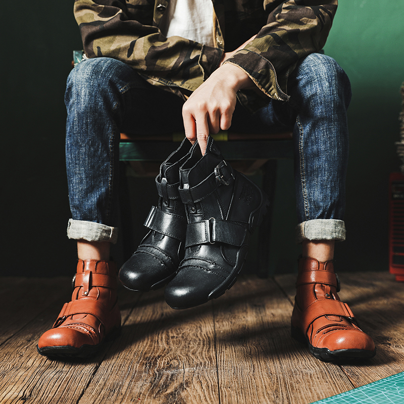 摩托车骑行鞋西部牛仔马丁皮靴男大头时装靴牛皮哈雷机车短靴朋克