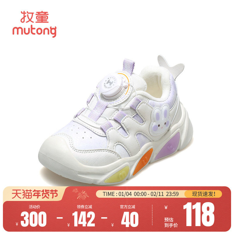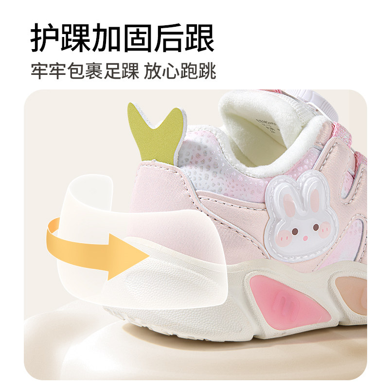 牧童原创小萌兔闪灯鞋2025秋冬新款加绒女童运动鞋儿童旋转扣鞋子