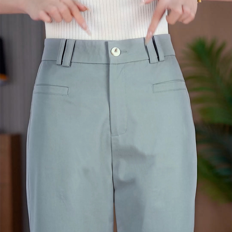 蓝色夏季天丝棉九分直筒裤女薄款高腰显瘦弹力舒适窄版阔腿休闲裤
