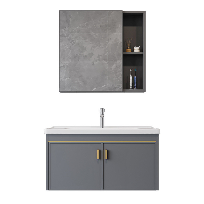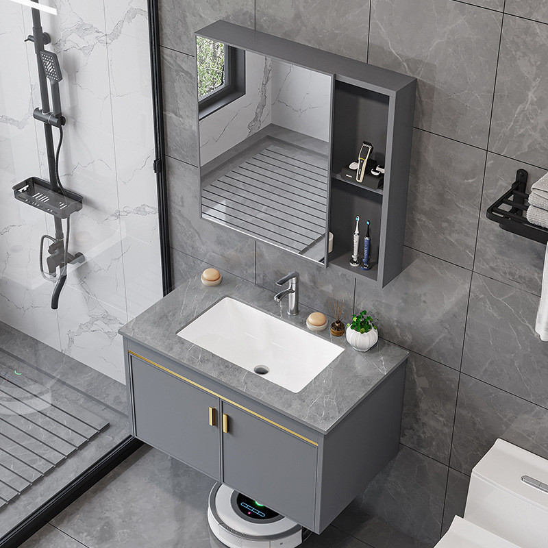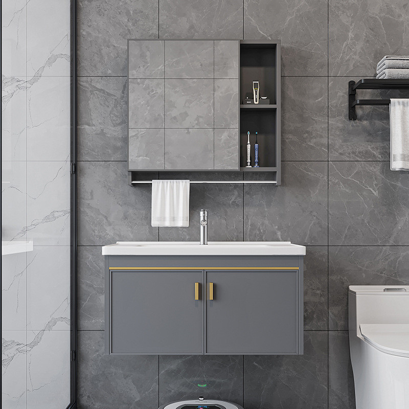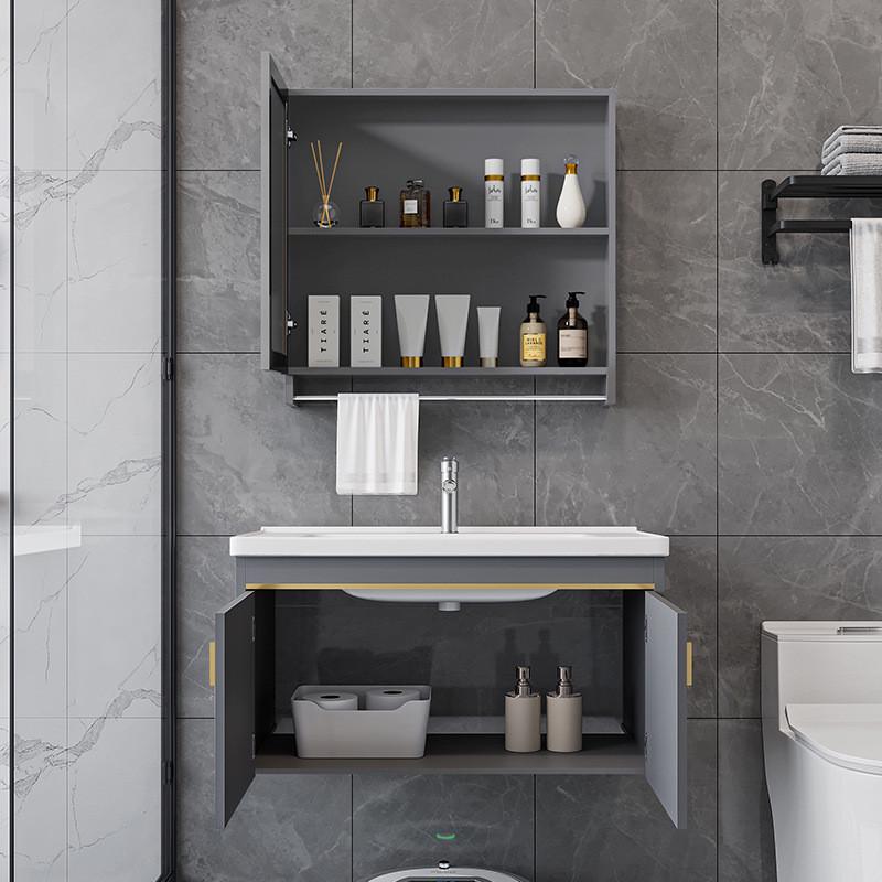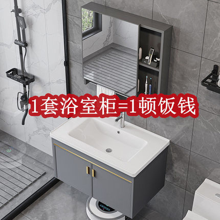 现代太空铝浴室柜卫生间洗手洗脸盆柜组合一体陶瓷洗漱台置物镜柜
