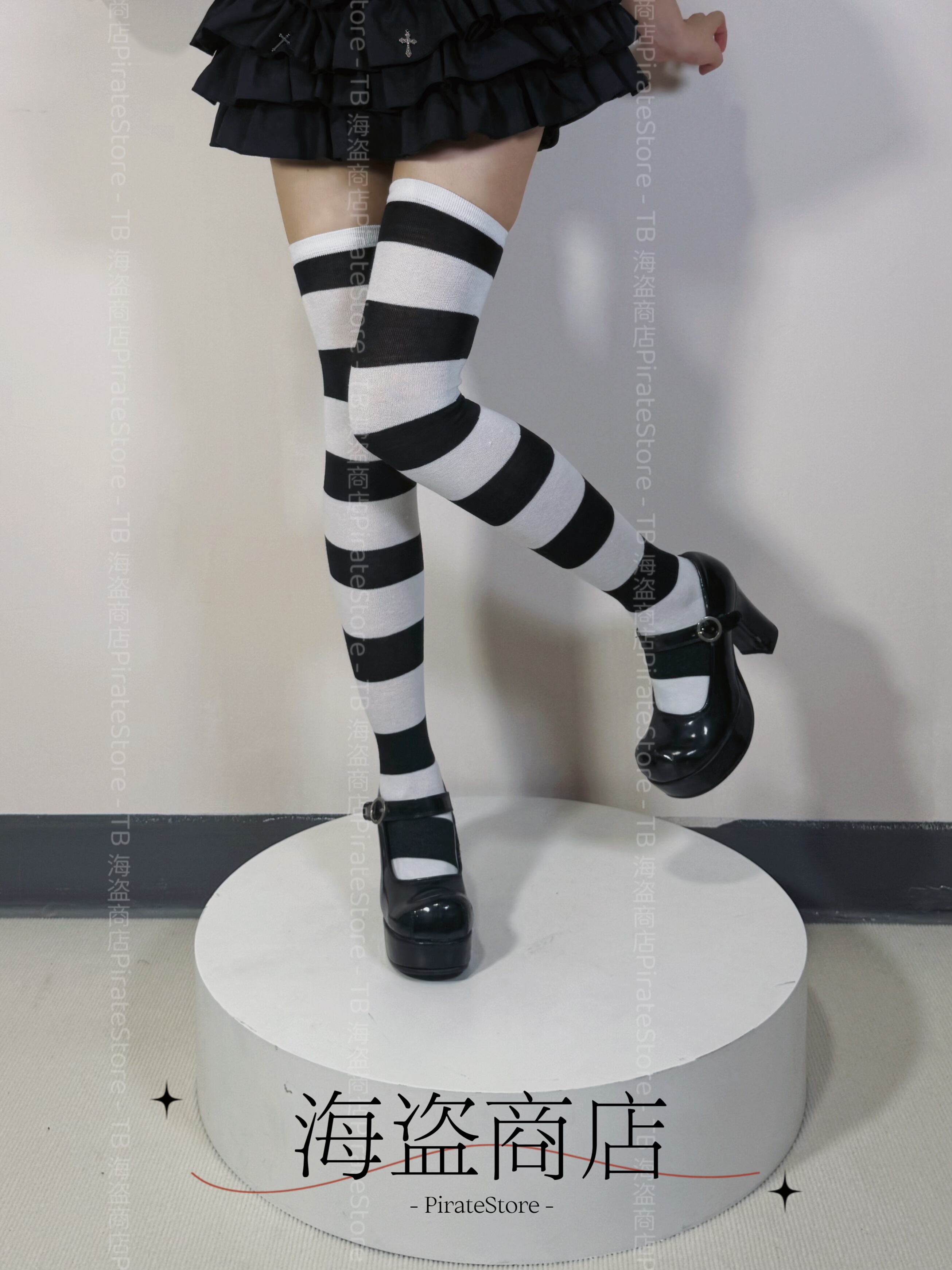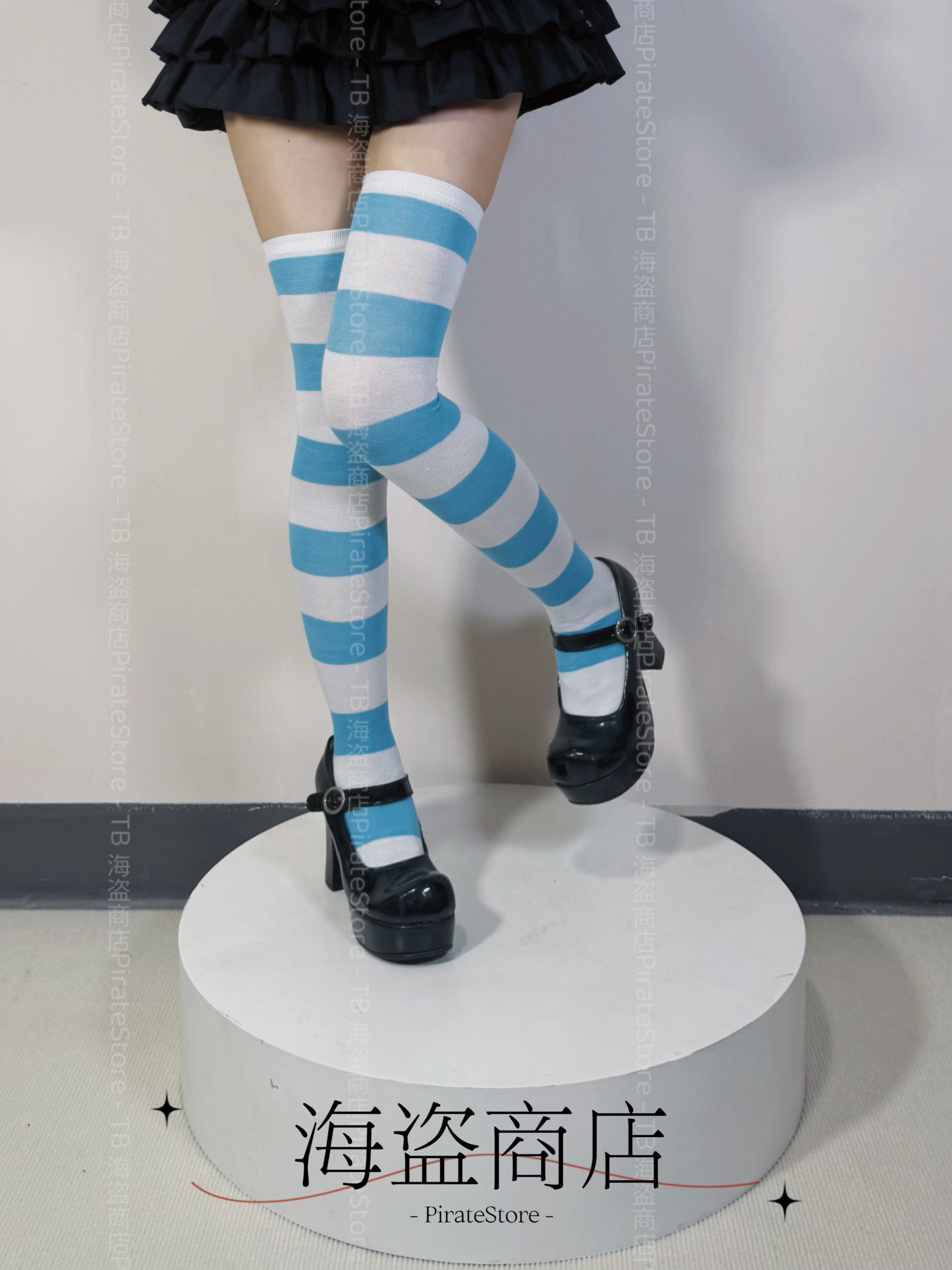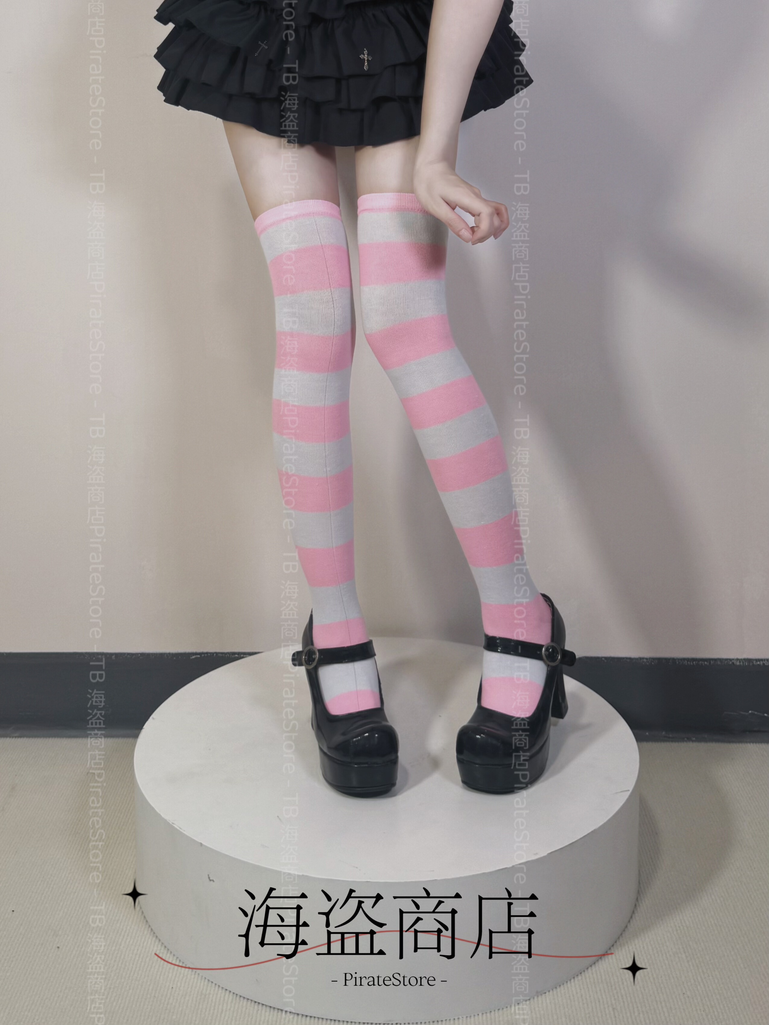 粗线条 条纹袜 过膝袜大腿袜 cos少女亚比lolita日系萌妹y2k复古