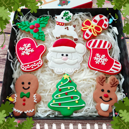 少许现货 圣诞节翻糖糖霜饼干圣诞老人姜饼人单块或礼盒圣诞礼物