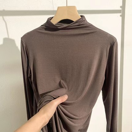 打底衫女2024秋冬莫代尔半高领洋气长袖内搭修身百搭t恤秋衣上衣