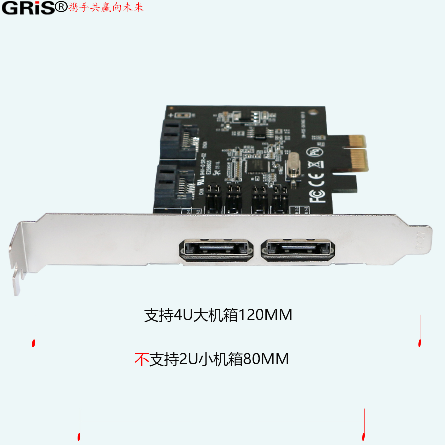 GRIS PCI-E转ESATA 3.0扩展卡SATA 6Gbps电脑Asmedia祥硕ASM1061主板SSD固态硬盘存储服务器不支持RAID阵列卡