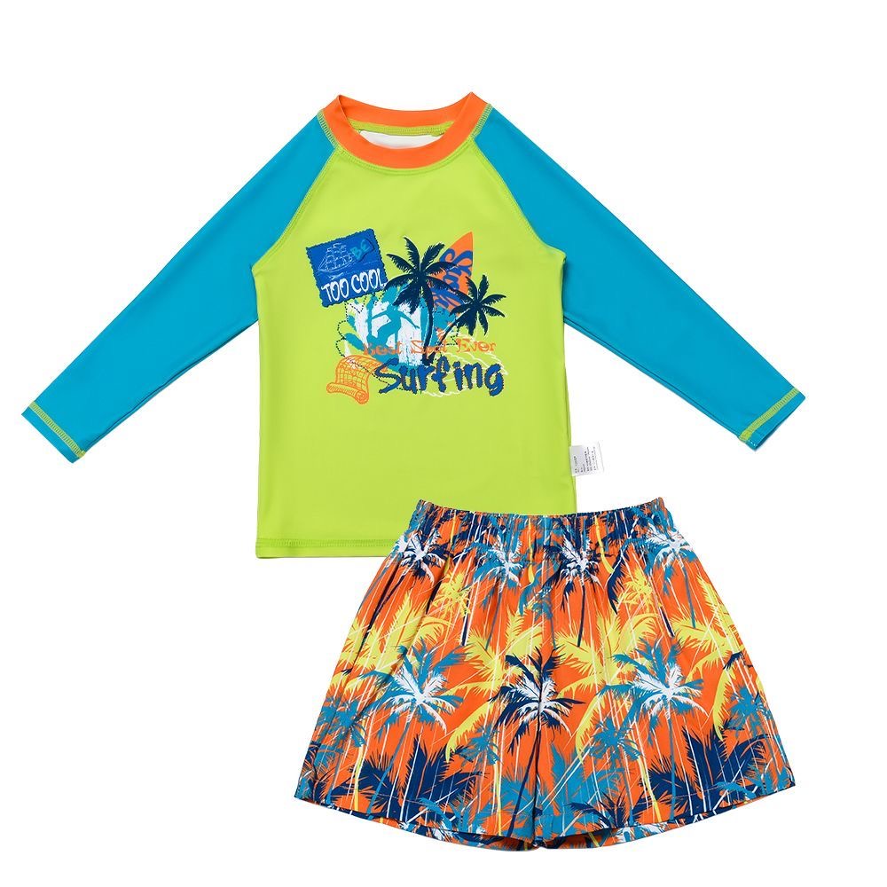 Amber儿童游泳衣男童中大童长袖分体防晒速干男孩沙滩裤温泉度假