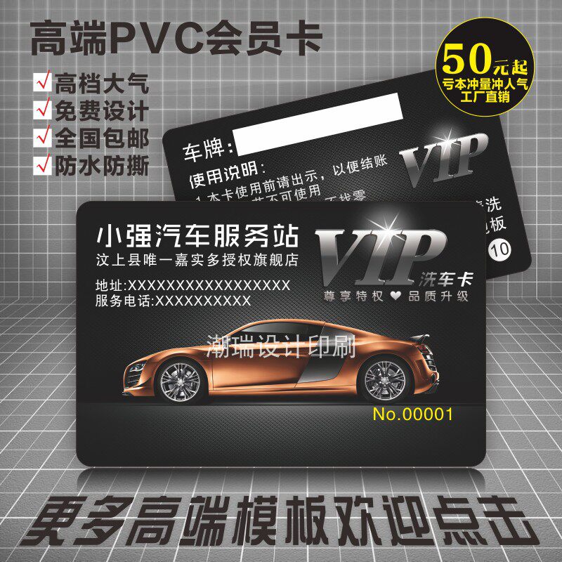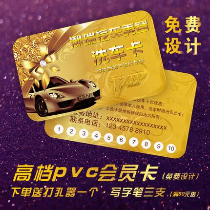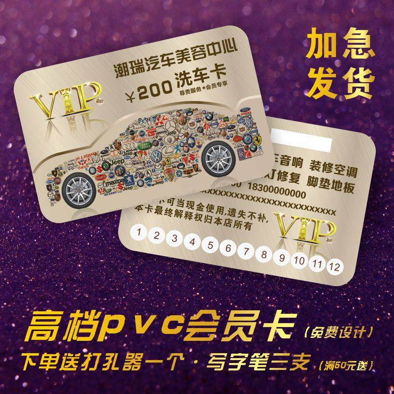 洗车卡制作定做 打孔 高档 pvc塑料vip会员卡 汽车美容维修店名片