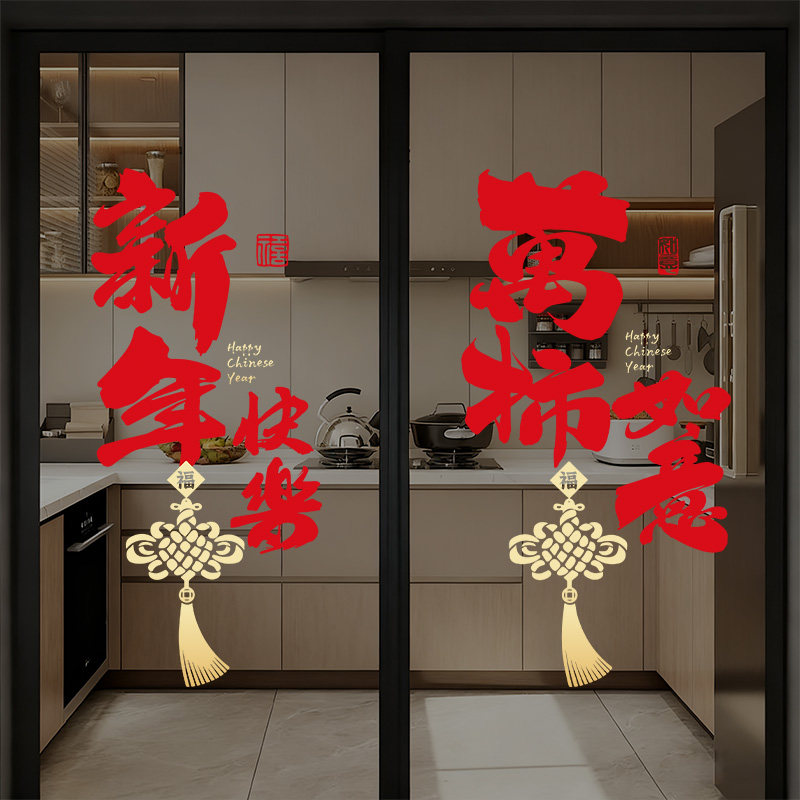 新年装饰品2026马年静电贴春节客厅橱窗氛围场景窗花玻璃贴纸布置