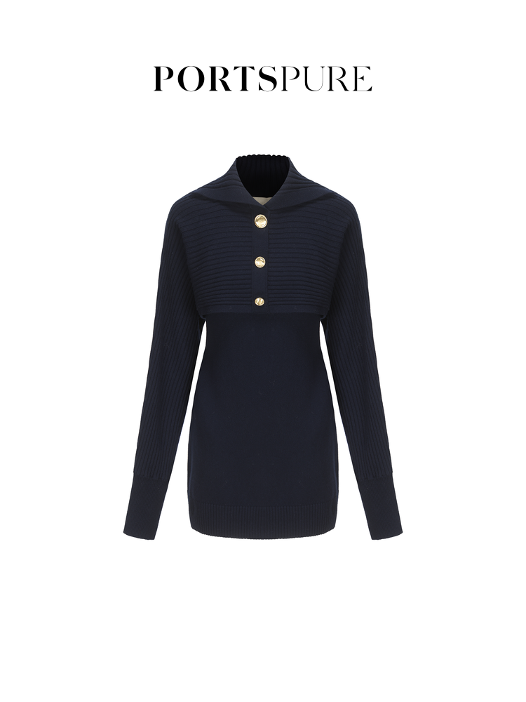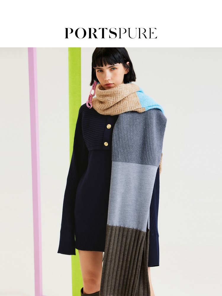 【博主同款】宝姿PORTSPURE女装层次设计感绵羊毛收腰连衣裙