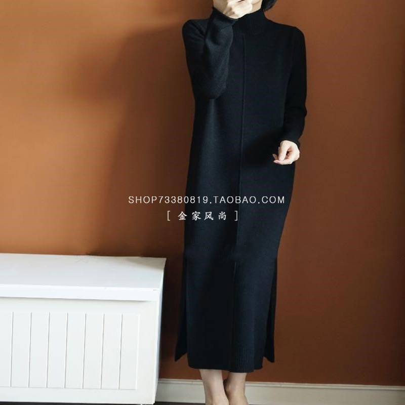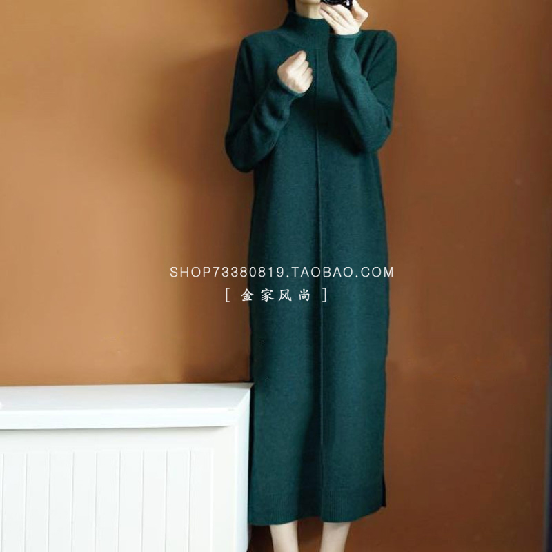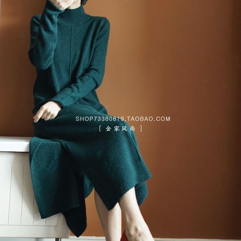上身效果好的一塌糊涂~羊绒衫女中长款半高领毛衣连衣裙过膝宽松