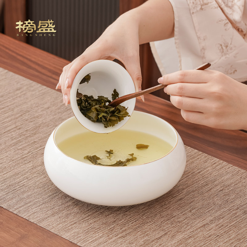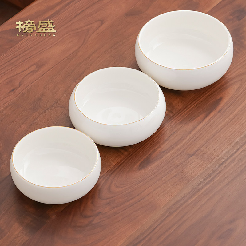 榜盛羊脂玉茶洗建水笔洗水孟洗茶杯碗白瓷家用大号茶具配件茶渣缸