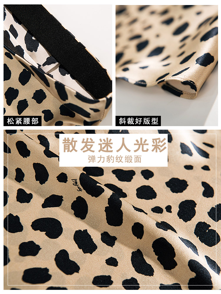 豹纹缎面半身裙女2025年夏季新款复古垂坠感高腰包臀a字鱼尾裙子