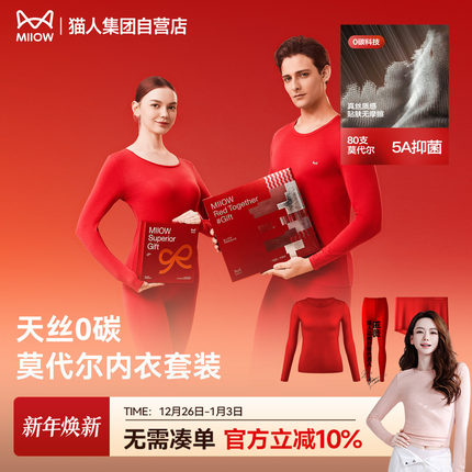 猫人本命年红色保暖内衣套装25新款男女情侣莫代尔秋衣秋裤礼盒装