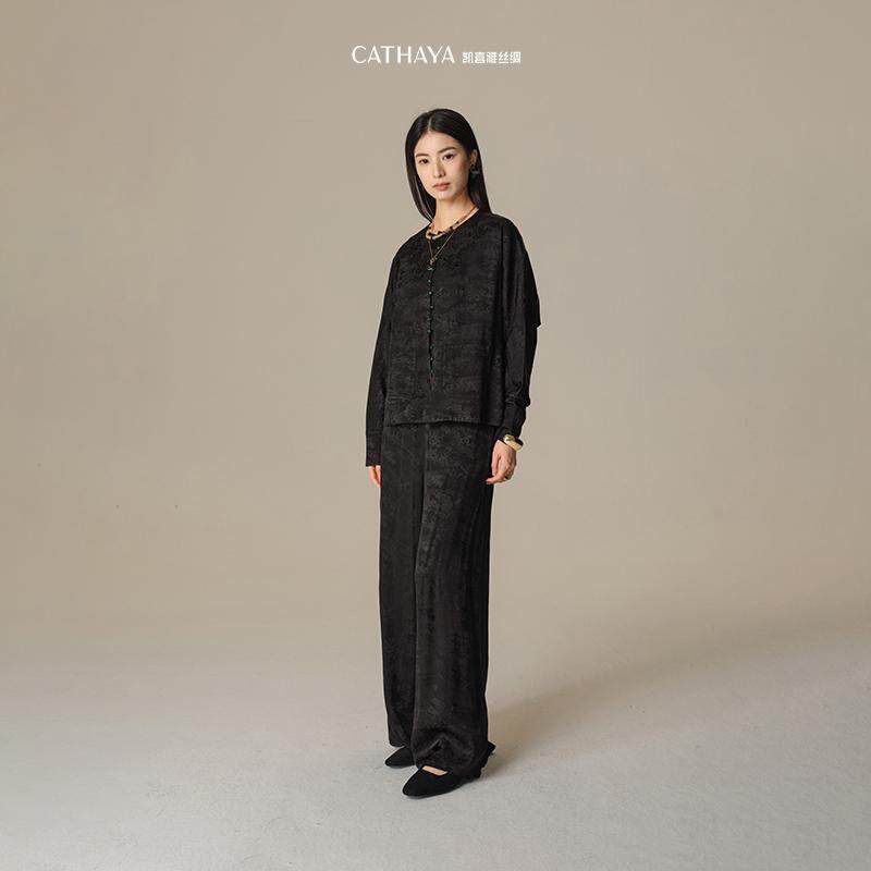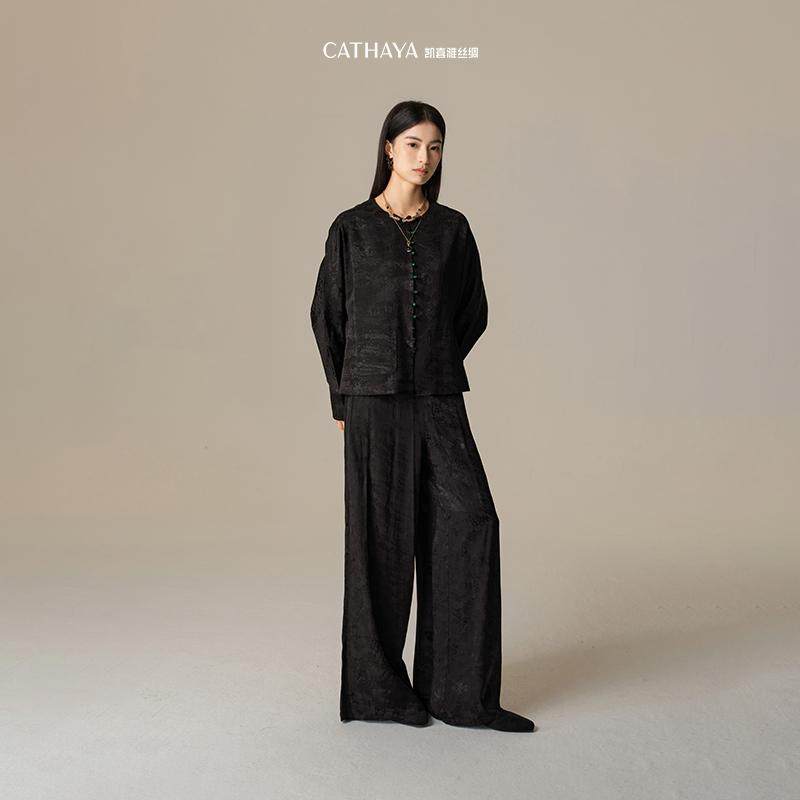 CATHAYA/凯喜雅2024新款高腰垂感直筒休闲女阔腿裤子ZZKWFKJL004