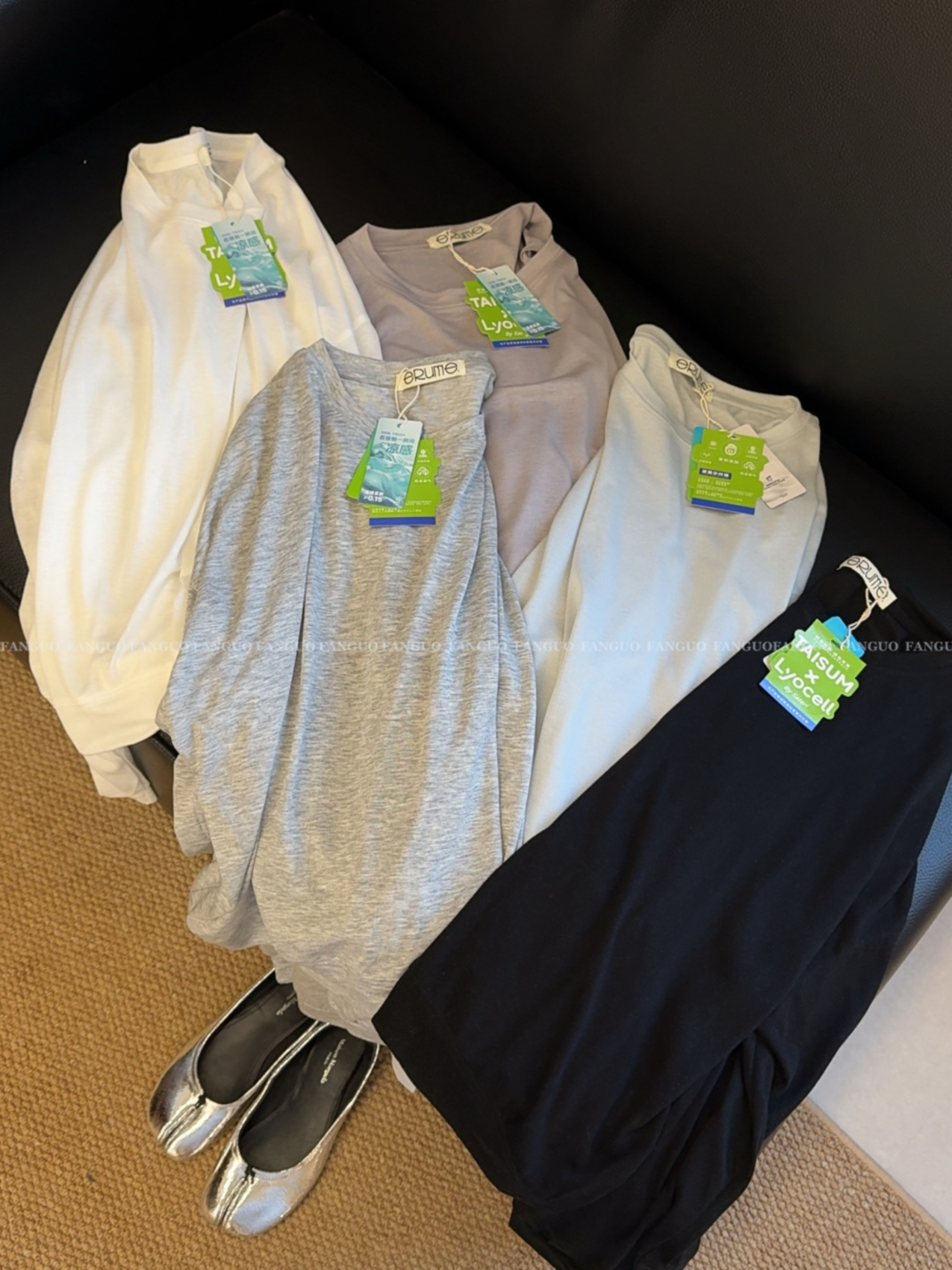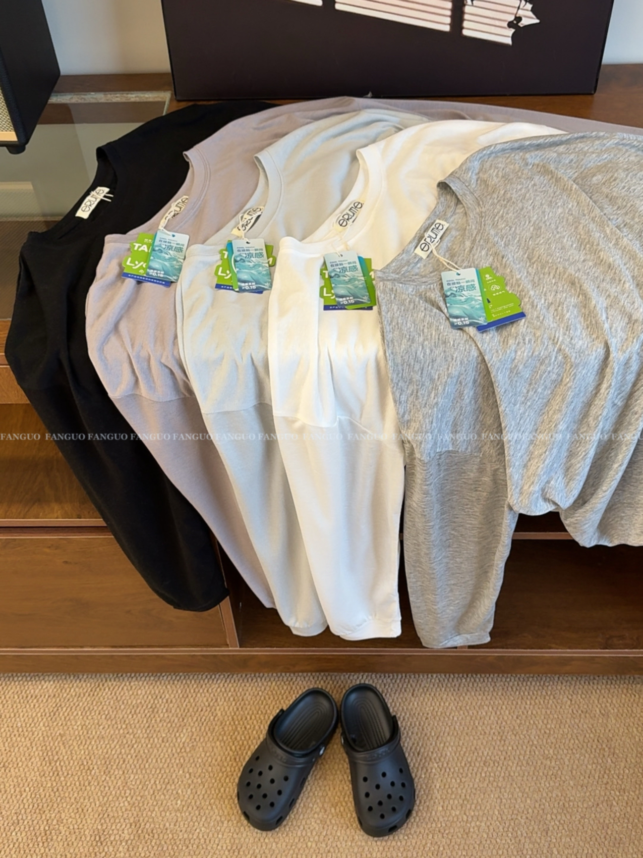 韩国eur*!慵懒风冰感天丝莱赛尔竹节棉面膜T长袖防晒衣女