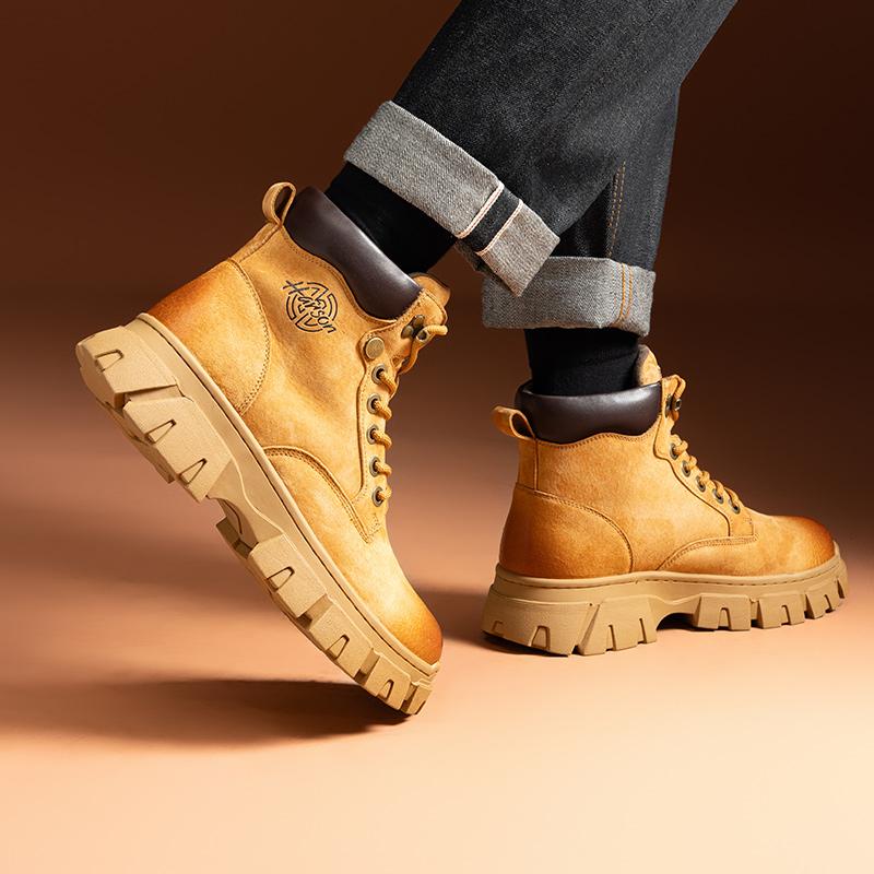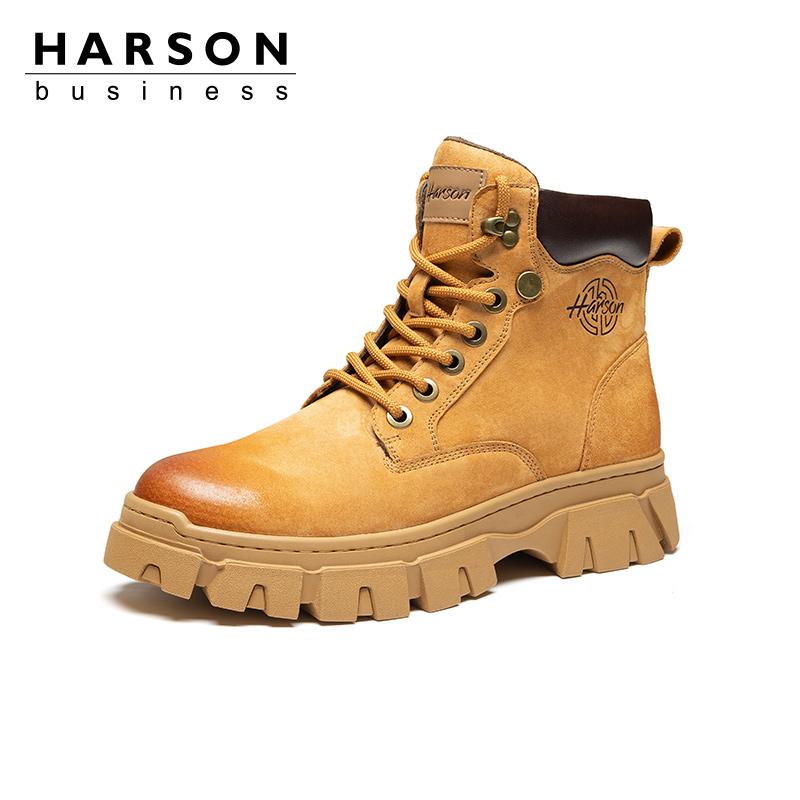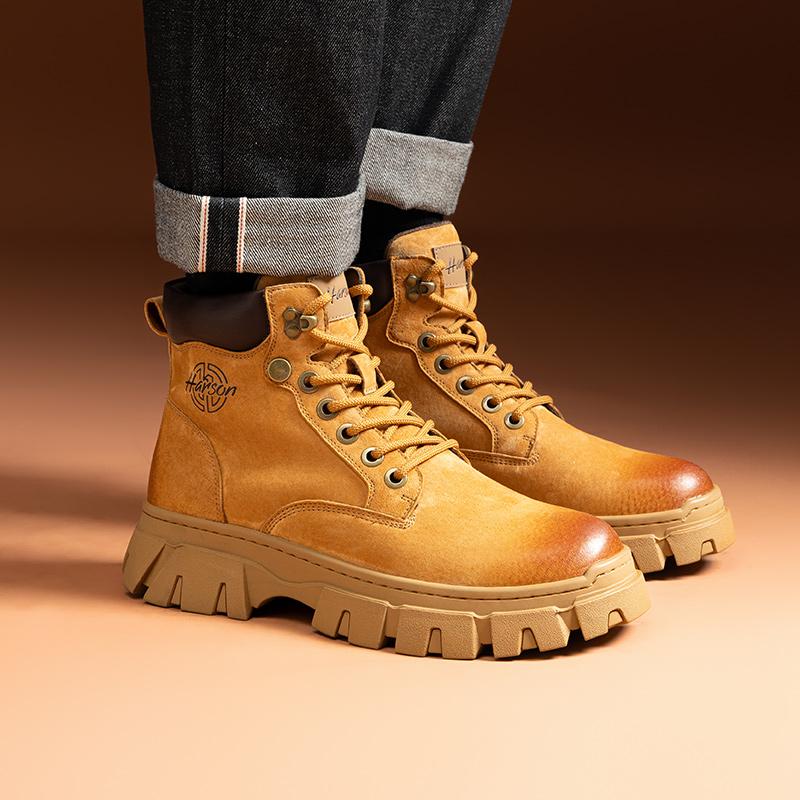 哈森马丁靴男款爆款男鞋新款高帮踢不烂大黄靴户外登山工装靴子男