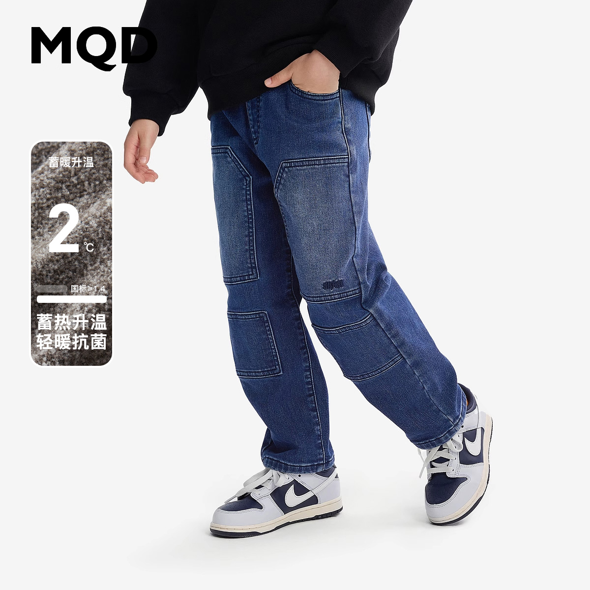 【抗菌】MQD男童火山岩加绒牛仔裤2024冬季新款儿童加厚保暖长裤