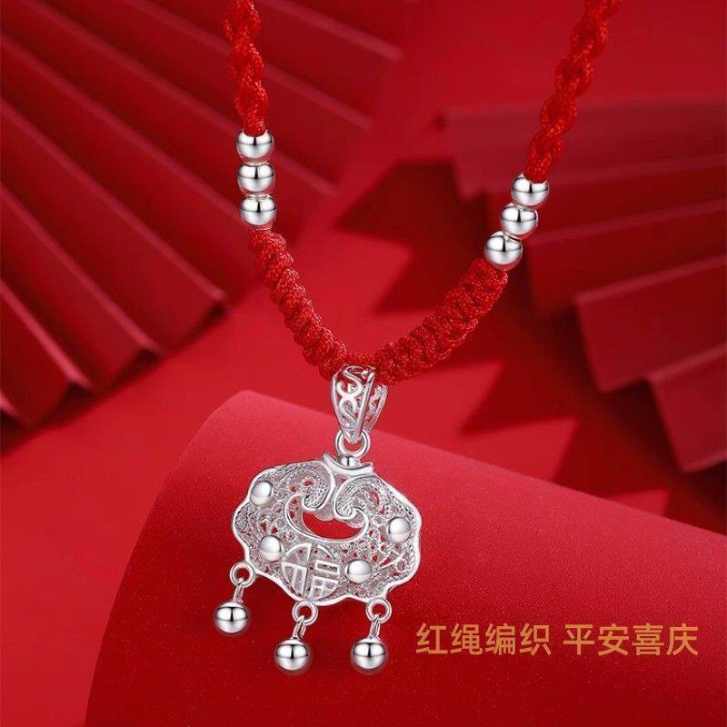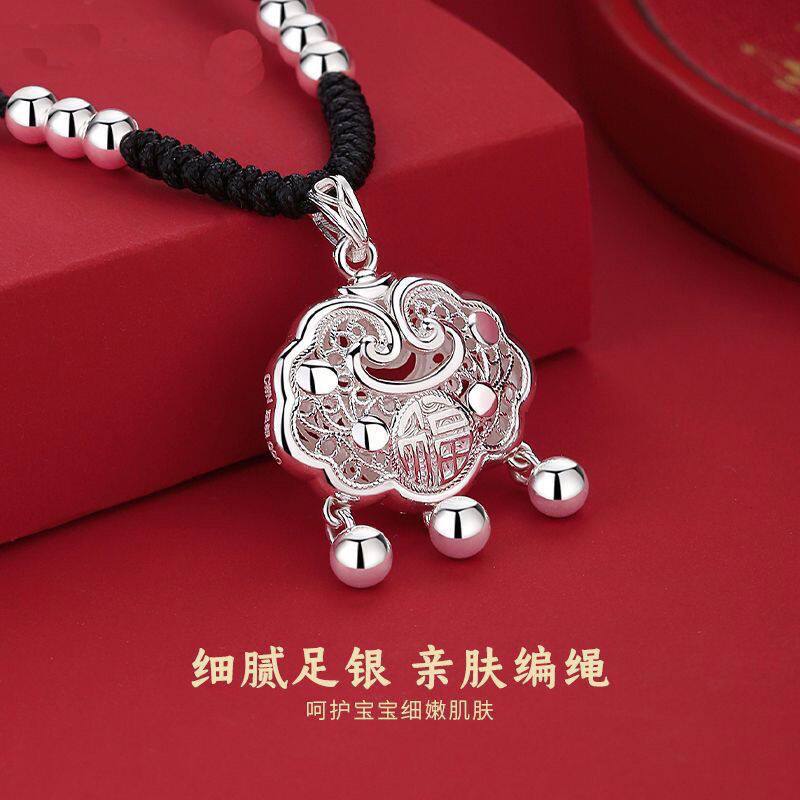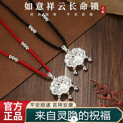 灵隐纯银平安锁项链女编绳S999足银宝宝长命锁婴儿吊坠送女友老婆