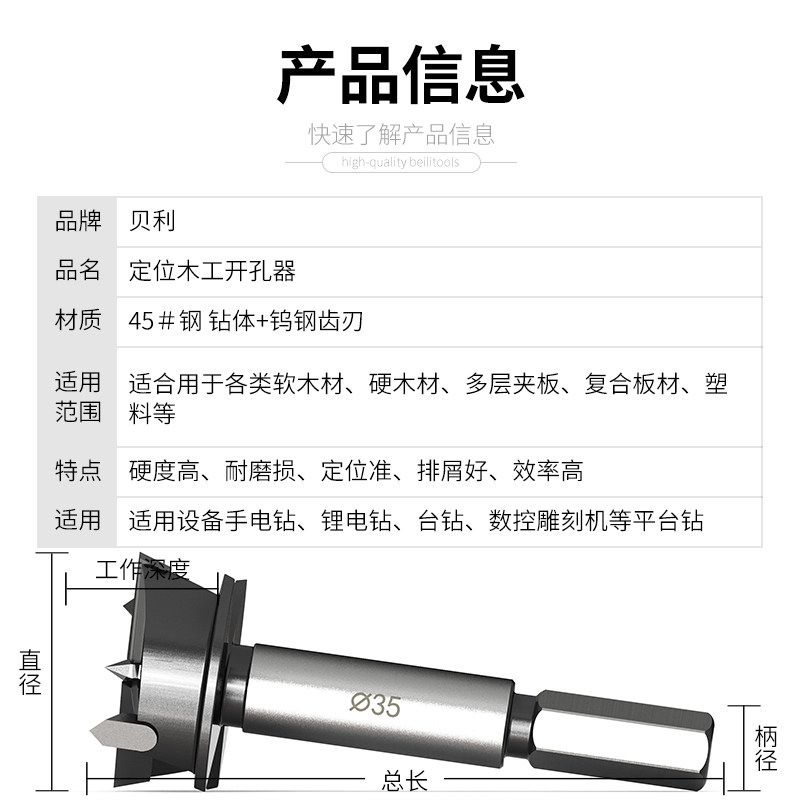 铰链开孔器专业带限位橱柜门柜门专用木工板飞机合页定位钻头35mm