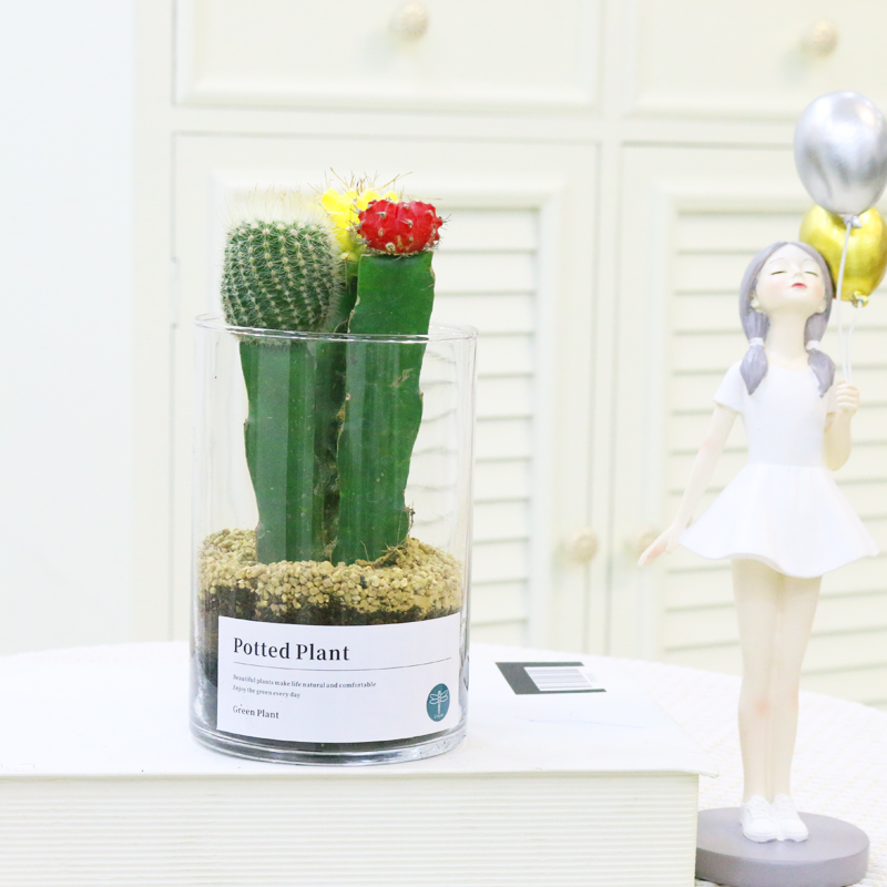 仙人掌多肉仙人球室内盆栽彩色三色球组合办公室桌面绿植盆景植物