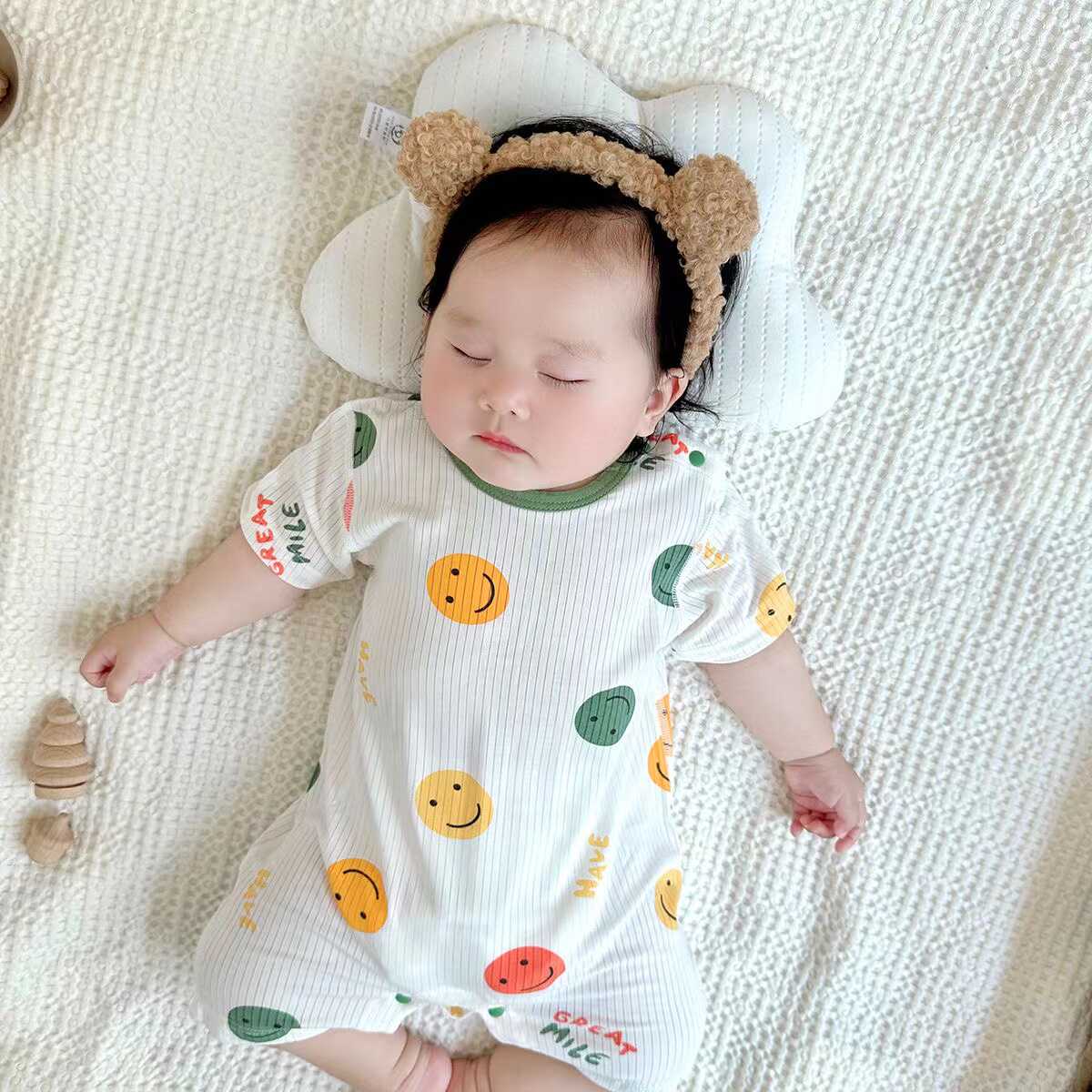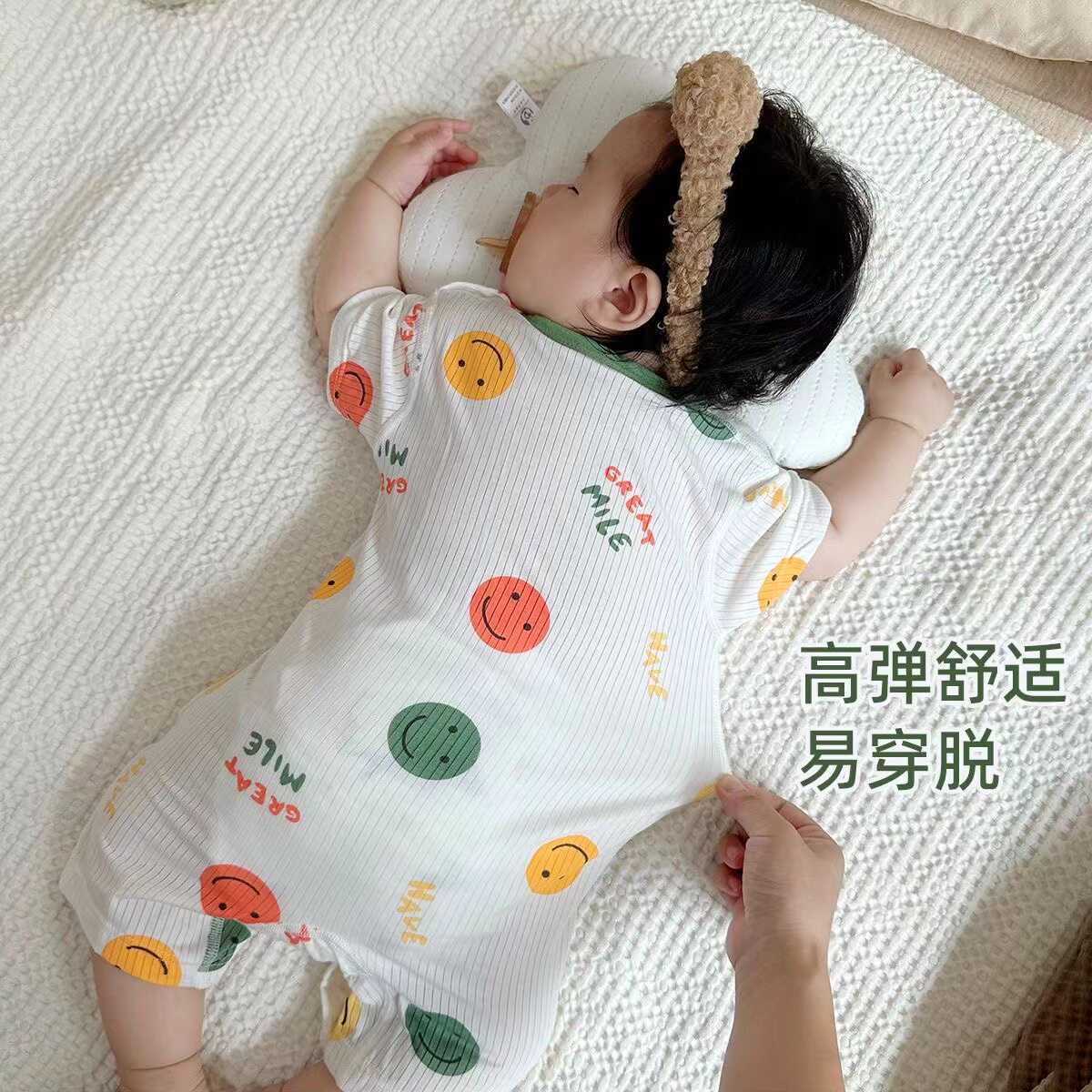 婴儿莫代尔连体衣夏季薄款新生儿睡衣宝宝短袖哈衣透气夏天空调服