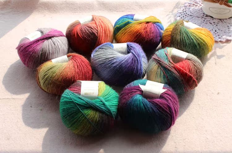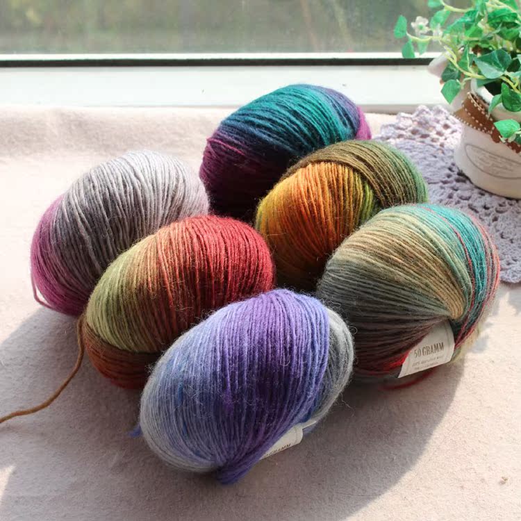 Anne毛线绒线 彩虹纯羊毛长段染线 围巾帽子线 披肩线 外套线