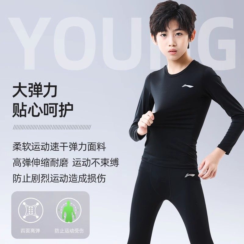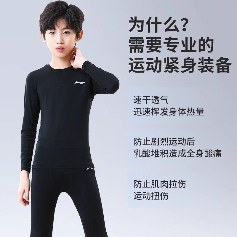 李宁儿童紧身衣训练服秋冬运动套装打底服篮球足球速干衣男童男孩