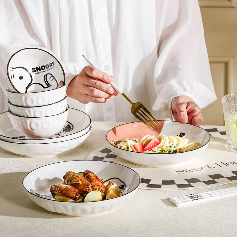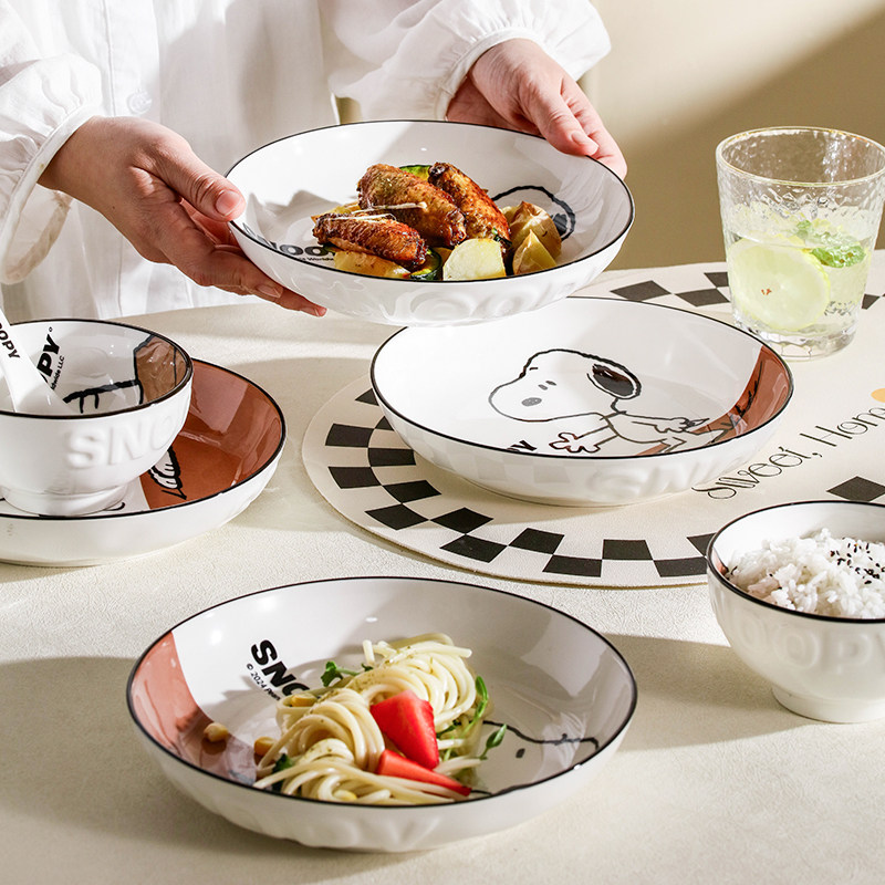 史努比釉下彩陶瓷餐具碗盘家用个人专用2025新款高颜值米饭碗盘子