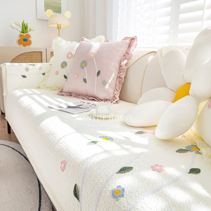 M.life 小清新全棉水洗棉沙发垫防滑纯棉沙发套罩靠背巾四季通用