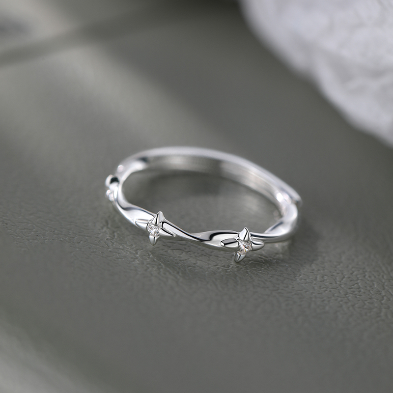 【巷南】999纯银四芒星戒指小众轻奢素圈开口戒女款食指戒高级感