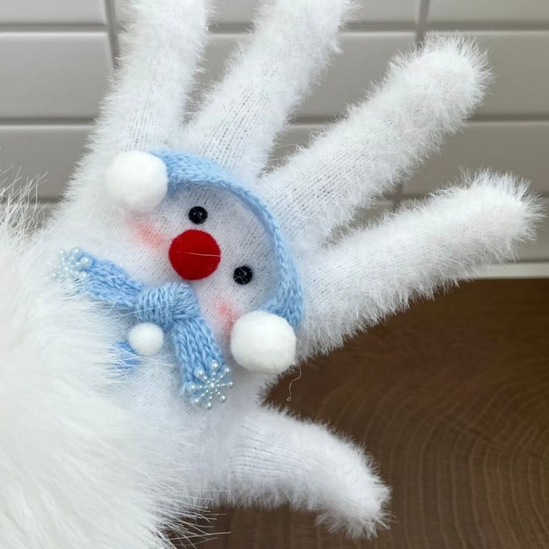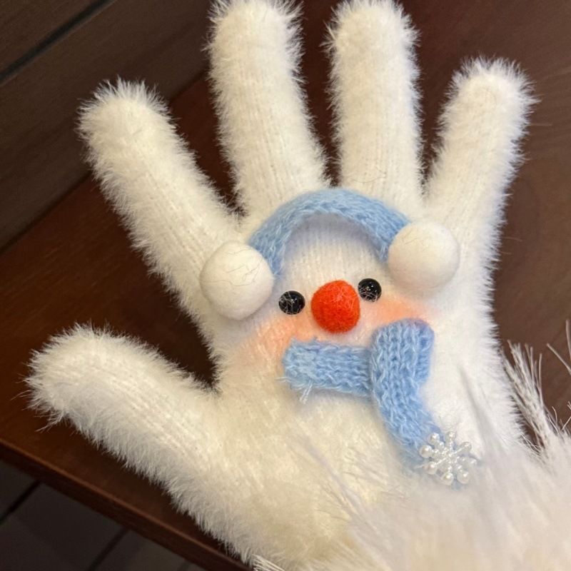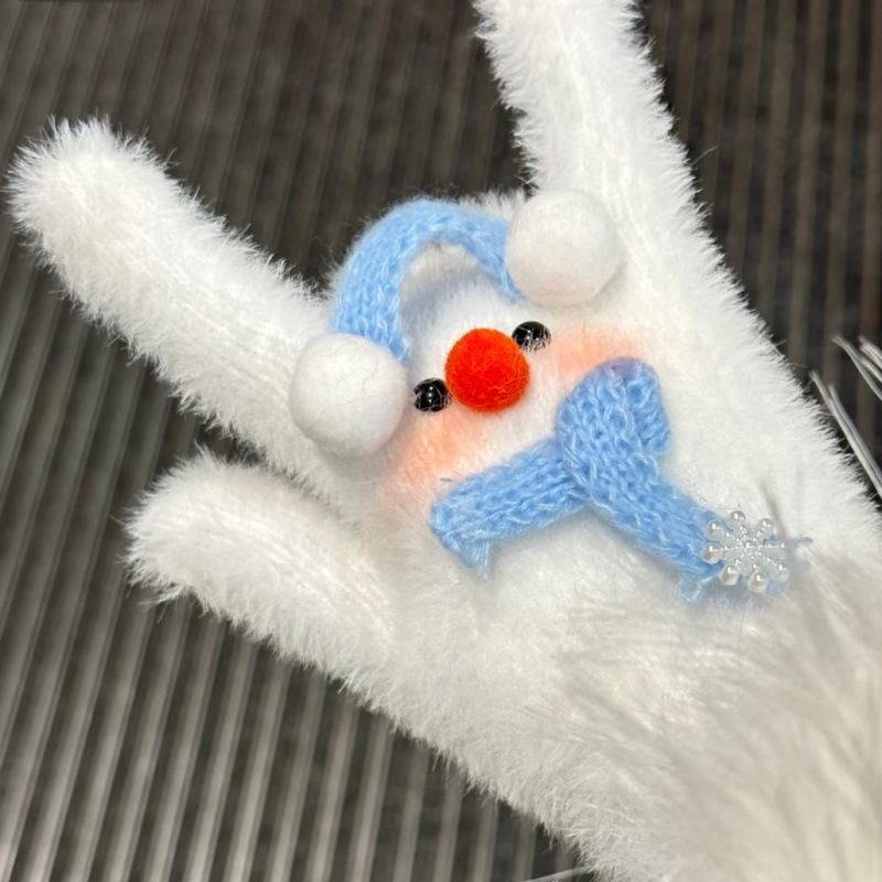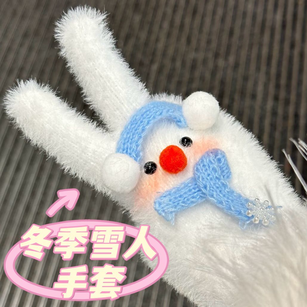 新款可爱雪人冬季防风防寒氛围感毛茸茸手套分指手套送闺蜜女友朋