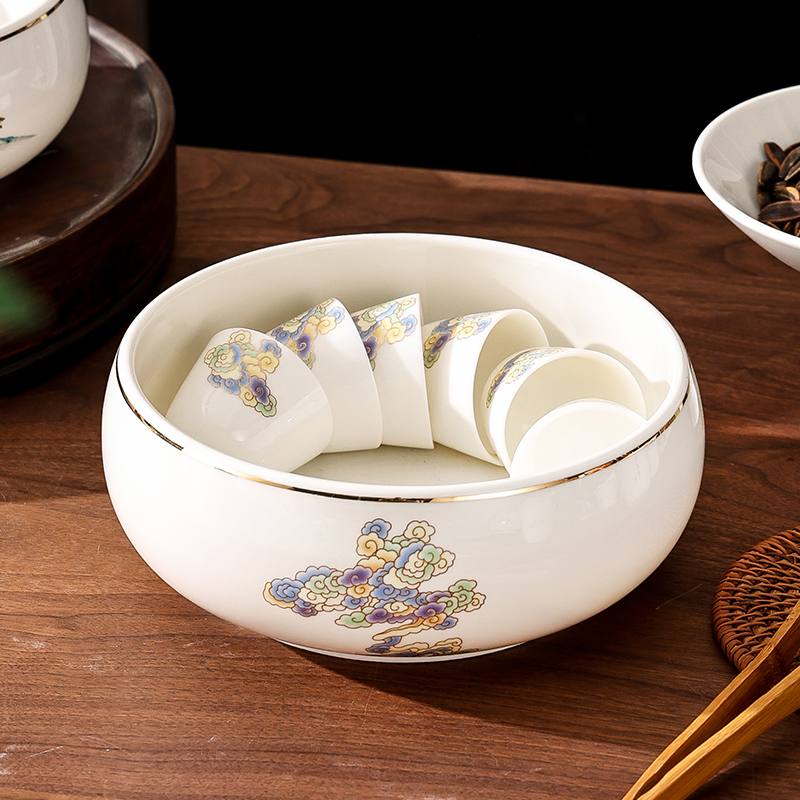 茶洗羊脂玉水洗陶瓷茶具大号笔洗茶渣缸白瓷水盂茶杯洗茶道零配