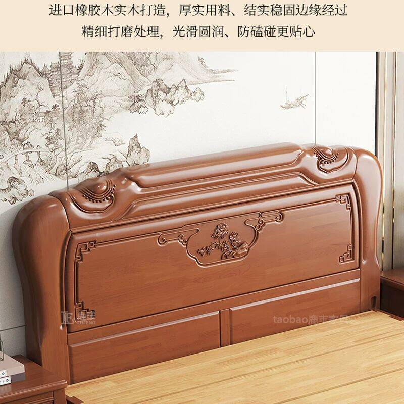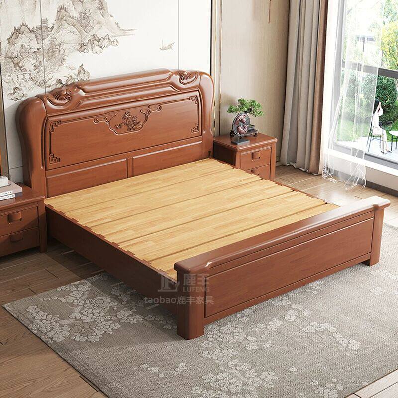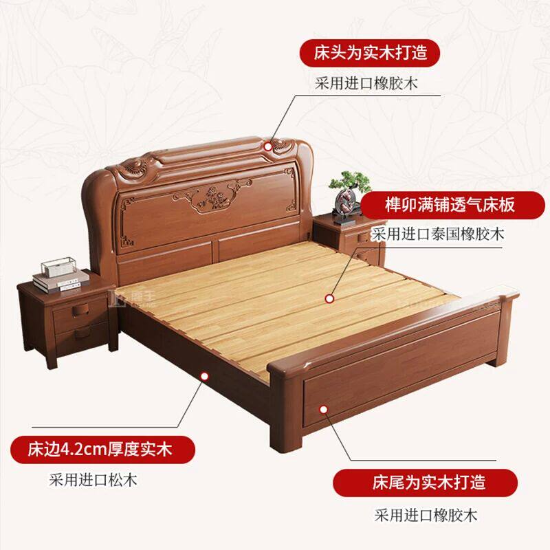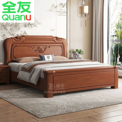 全友家居官网中式实木床1米81.5m双人大床榫卯结构古典加厚工厂直
