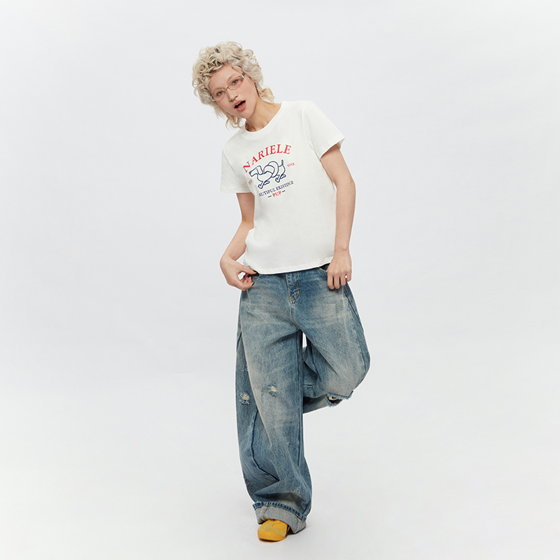 AIRHOOD 趣味减龄香肠小狗正肩上衣女2025夏新款短袖纯棉t恤白色