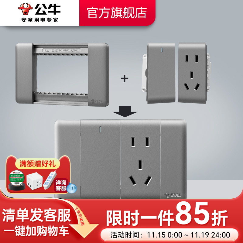 公牛插座旗舰开关插座自由搭配118型五孔多孔双开三开九孔G24灰色