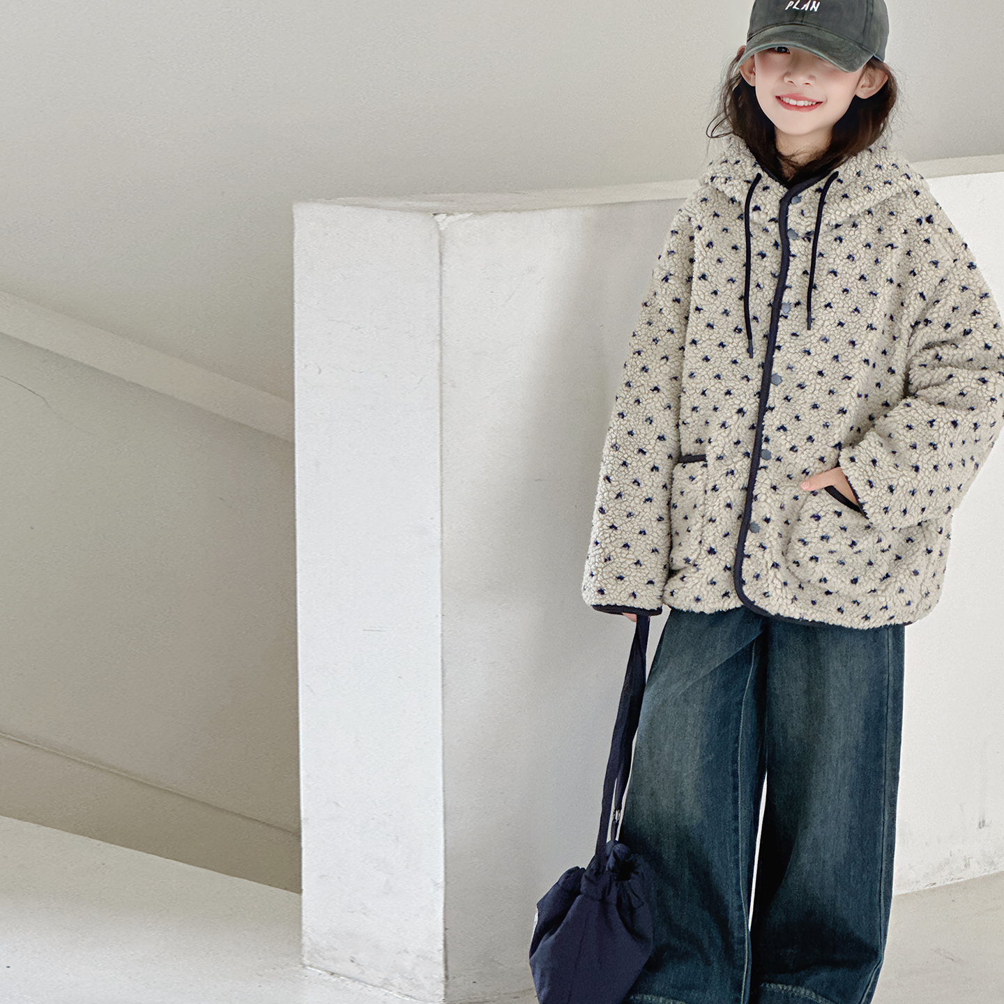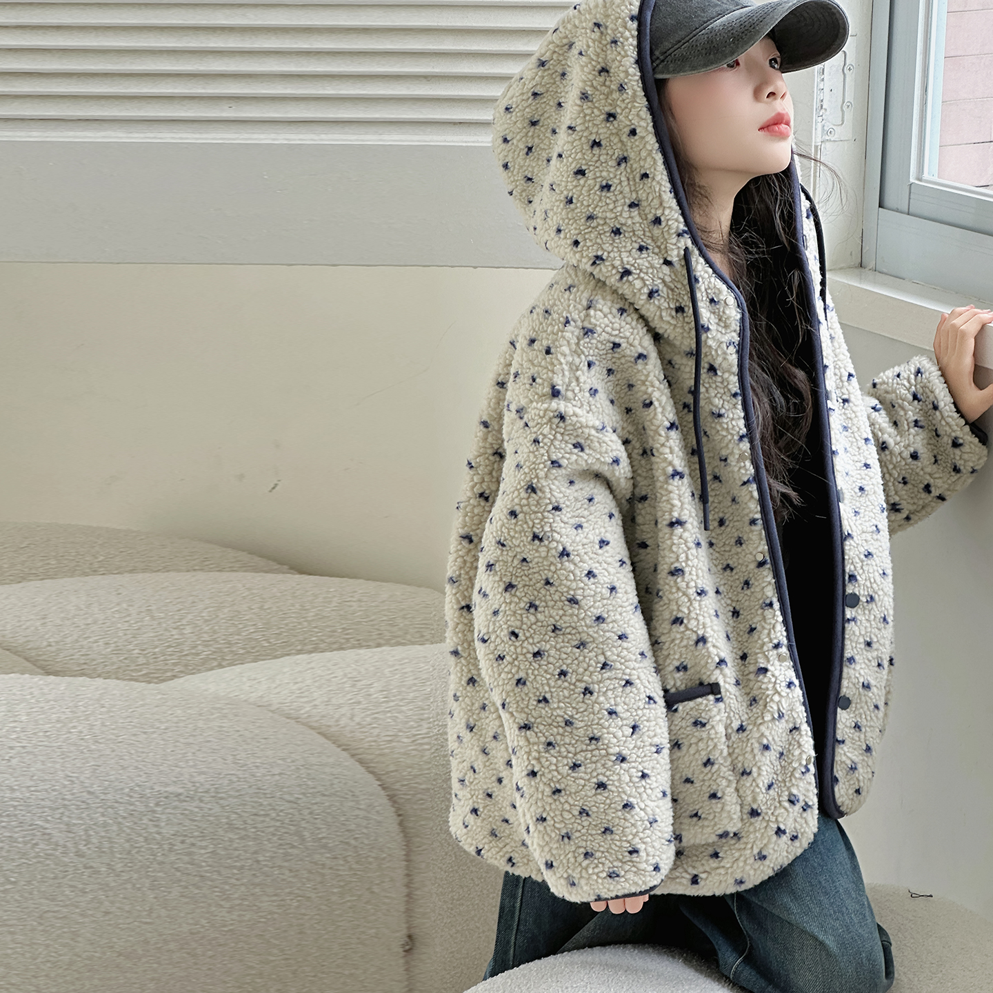 女童羊羔毛外套秋冬2025新款儿童韩版洋气加厚连帽上衣大童毛毛衣