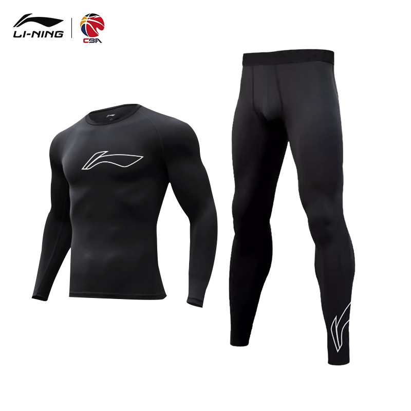 李宁CBA健身衣服男春秋跑步运动套装篮球打底训练紧身压缩速干衣