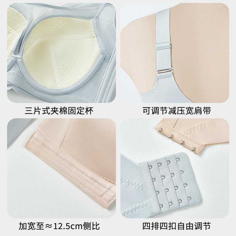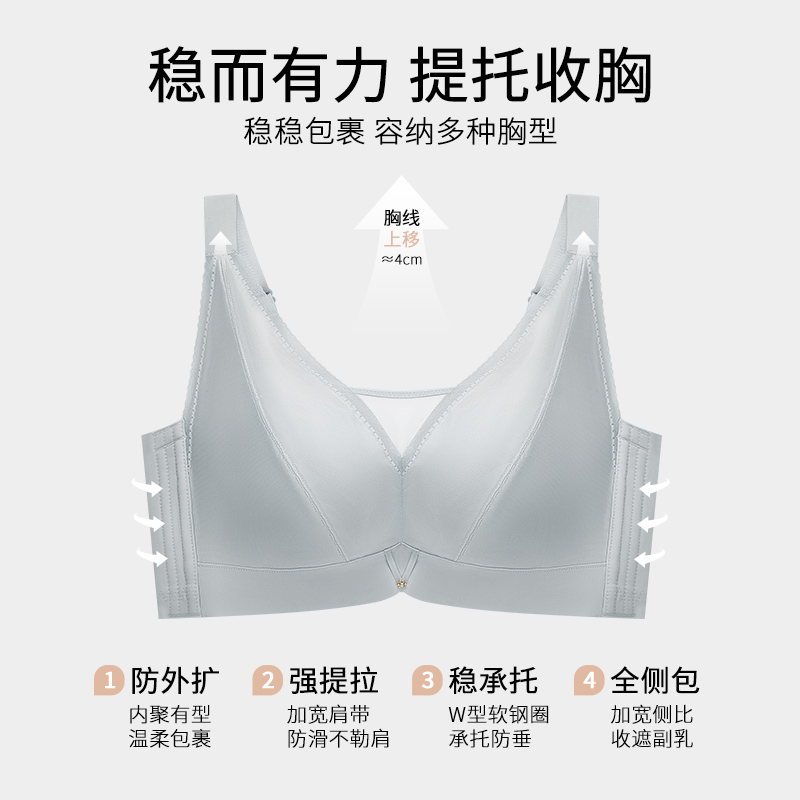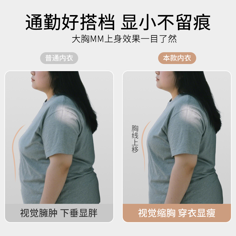 婷美薄大胸显小提拉无痕文胸呼吸杯防下垂提拉收副乳胖mm大码内衣