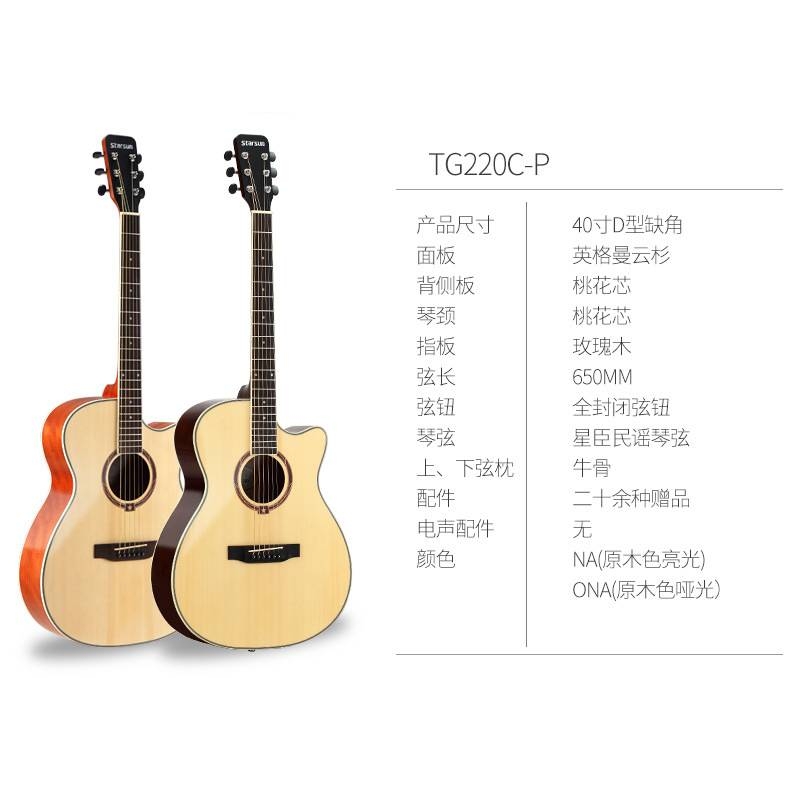 星辰民谣吉他星臣40寸41寸木吉它入门初学者新手练习jita乐器电箱